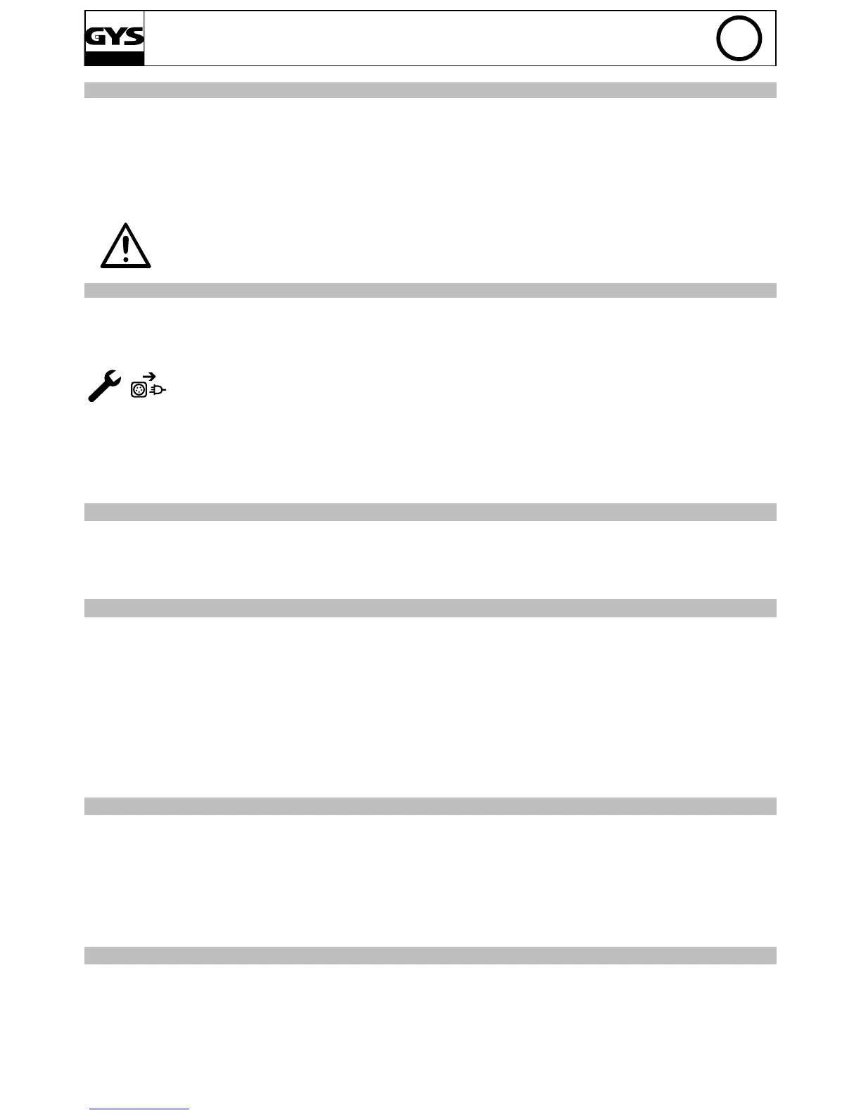 Der Hersteller GYS haftet nicht für Verletzungen oder Schäden, die durch unsachgemäße Handhabung dieses Gerätes entstanden