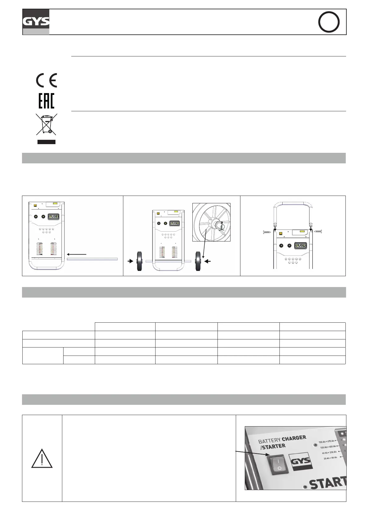 Assembling the handle and the wheels (only for 480E, 680E and 980E) :