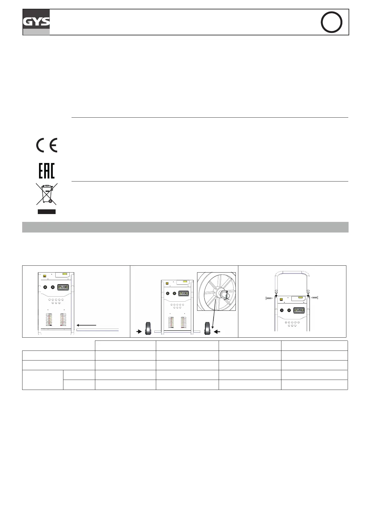 Montaje del soporte de transporte y de las ruedas (solo en las versiones 480E, 680E y 980E)
