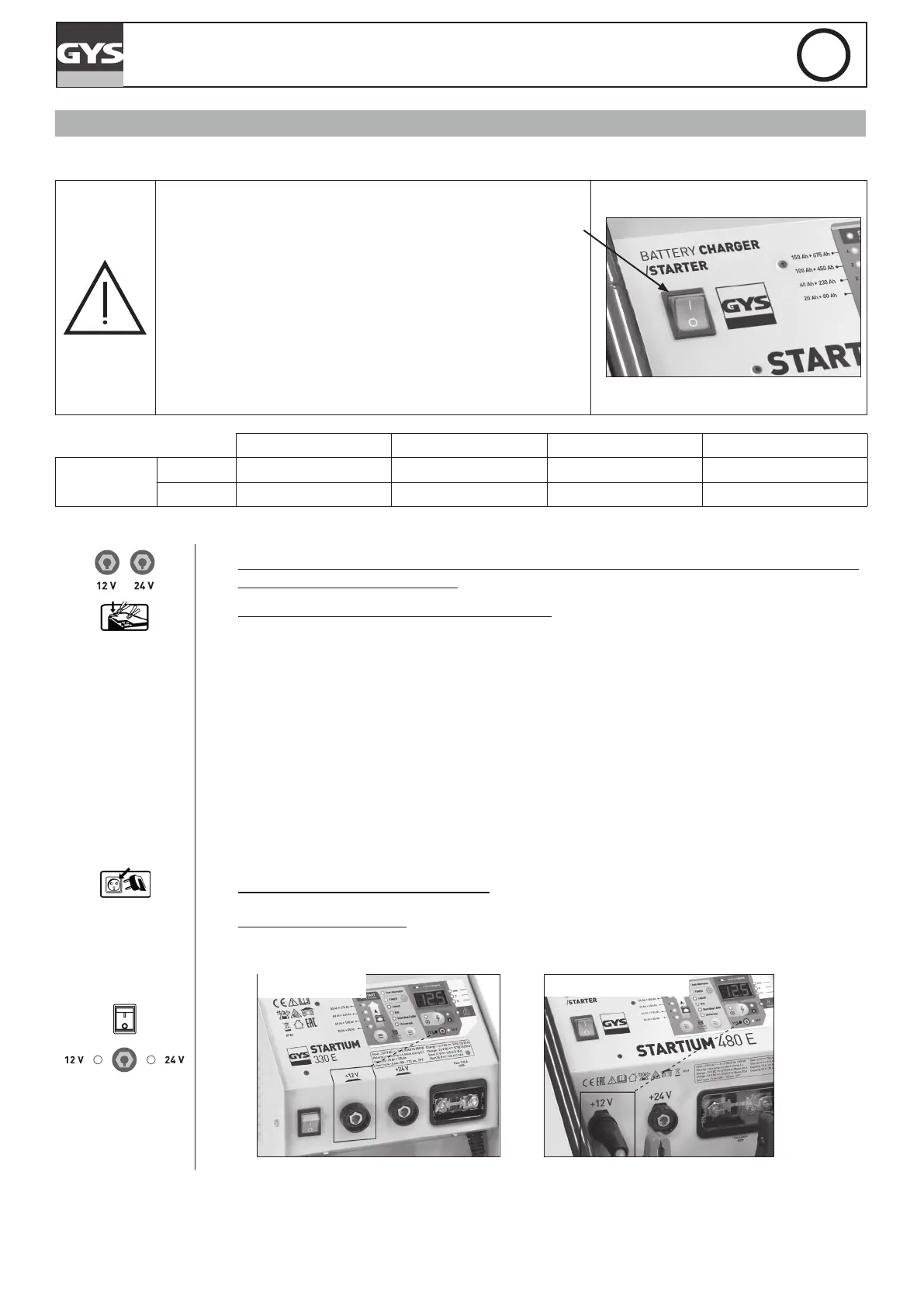 Conecte el conector a la posición «12 V» o «24 V» del STARTIUM en función de la batería