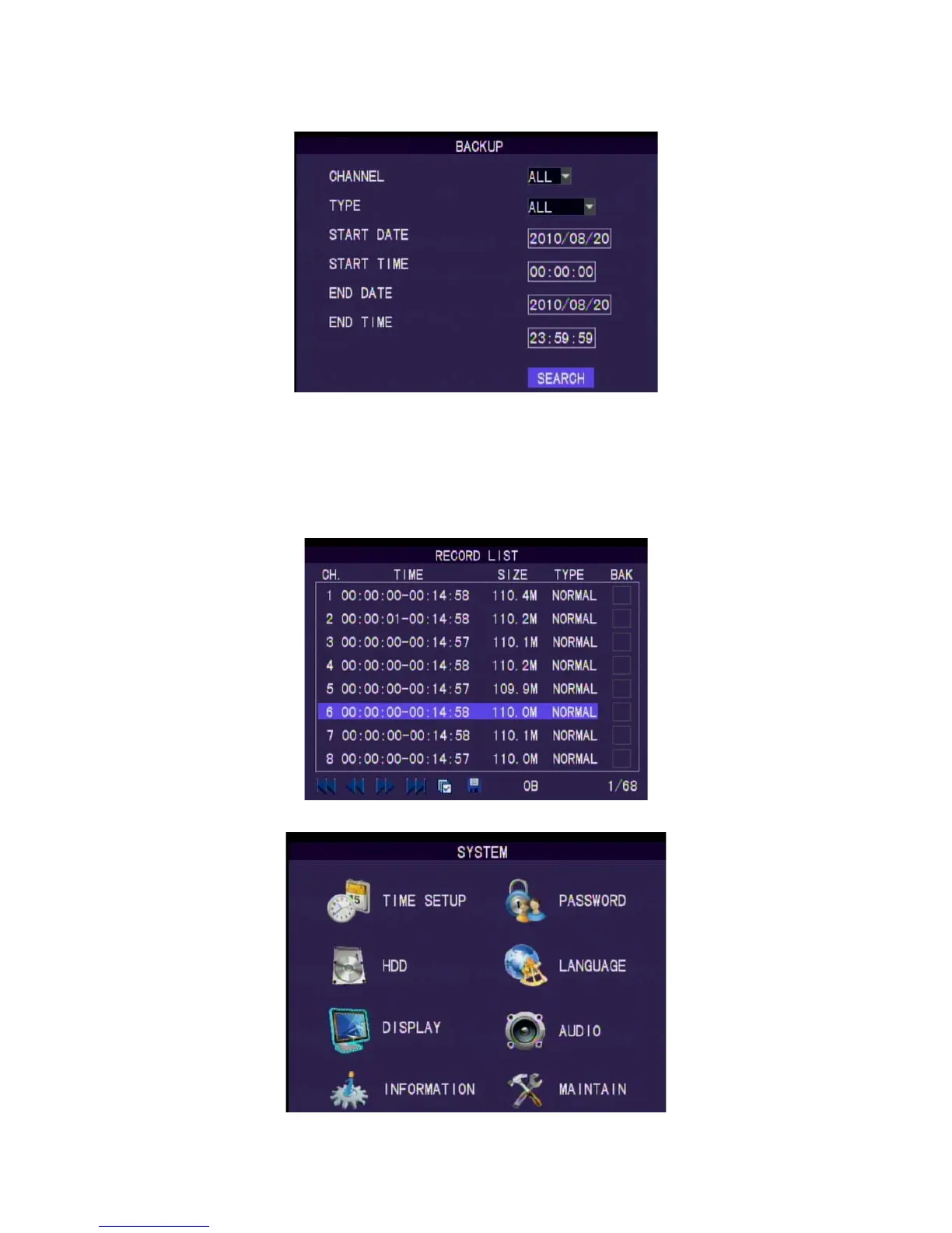 Select the backup range of time. Press Search to start searching.The record
