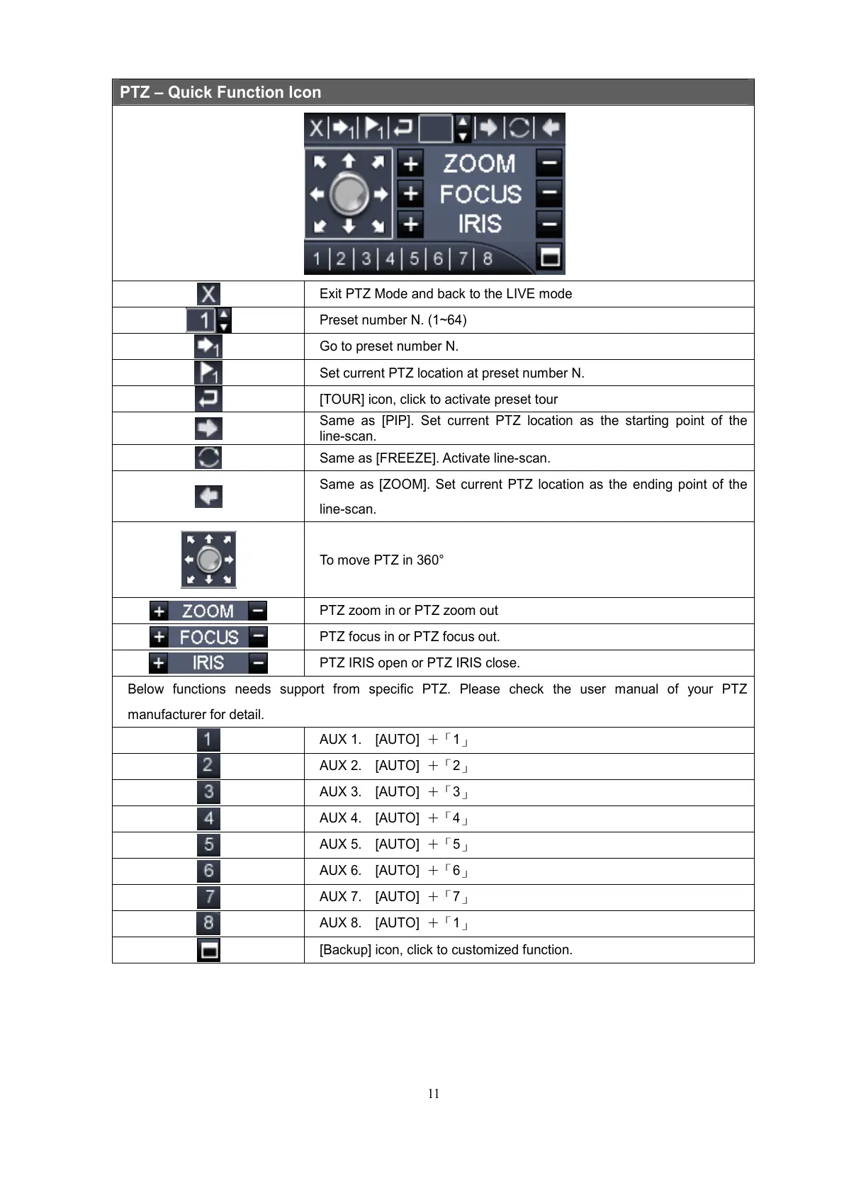 Below functions needs support from specific PTZ. Please check the user manual of your PTZ