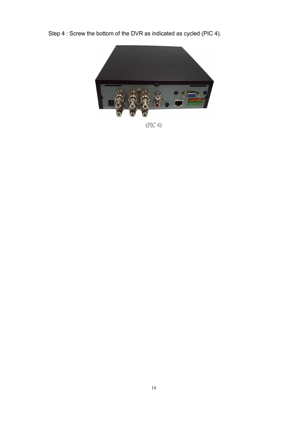 Step 4 : Screw the bottom of the DVR as indicated as cycled (PIC 4).