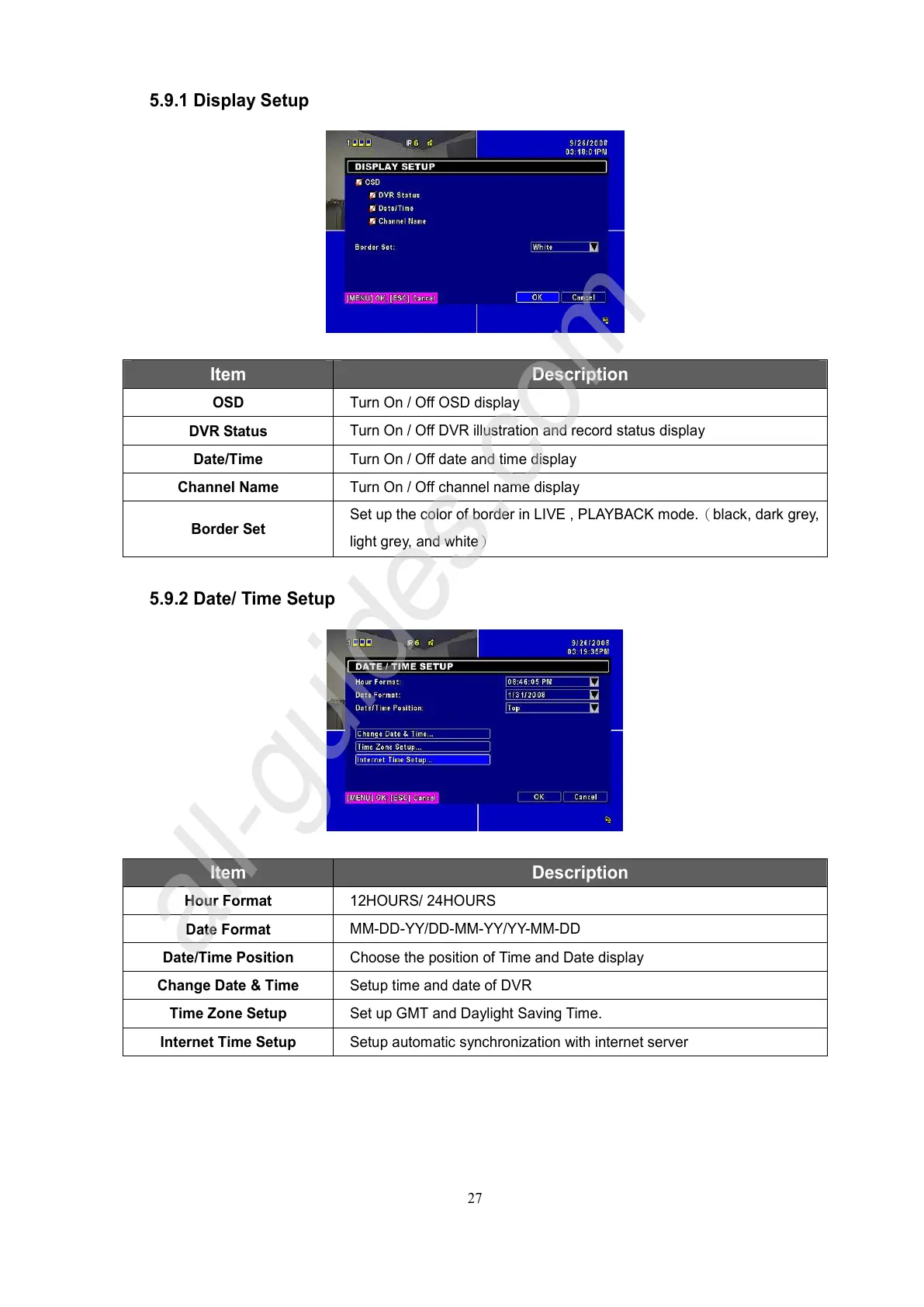 Set up the color of border in LIVE , PLAYBACK mode.(black, dark grey,