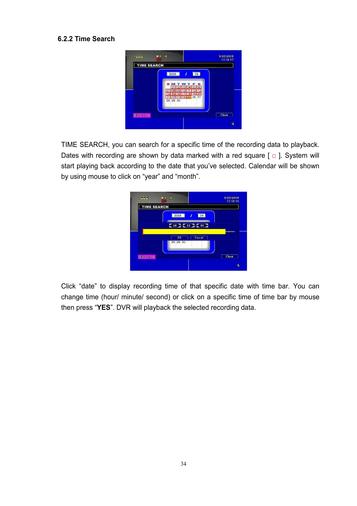 then press “YES”. DVR will playback the selected recording data.