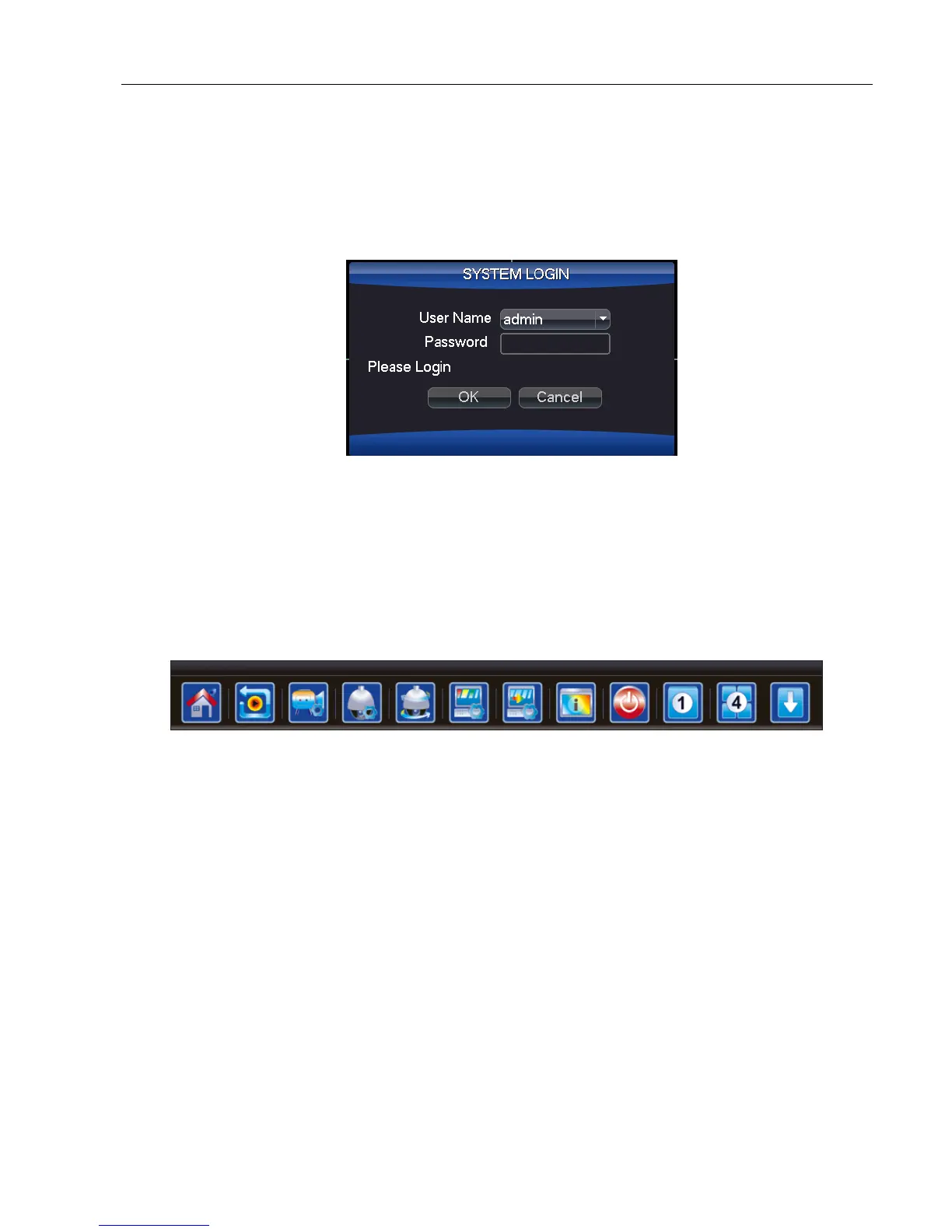 When the DVR boots up, the user must login and the system will provide the corresponding function according to