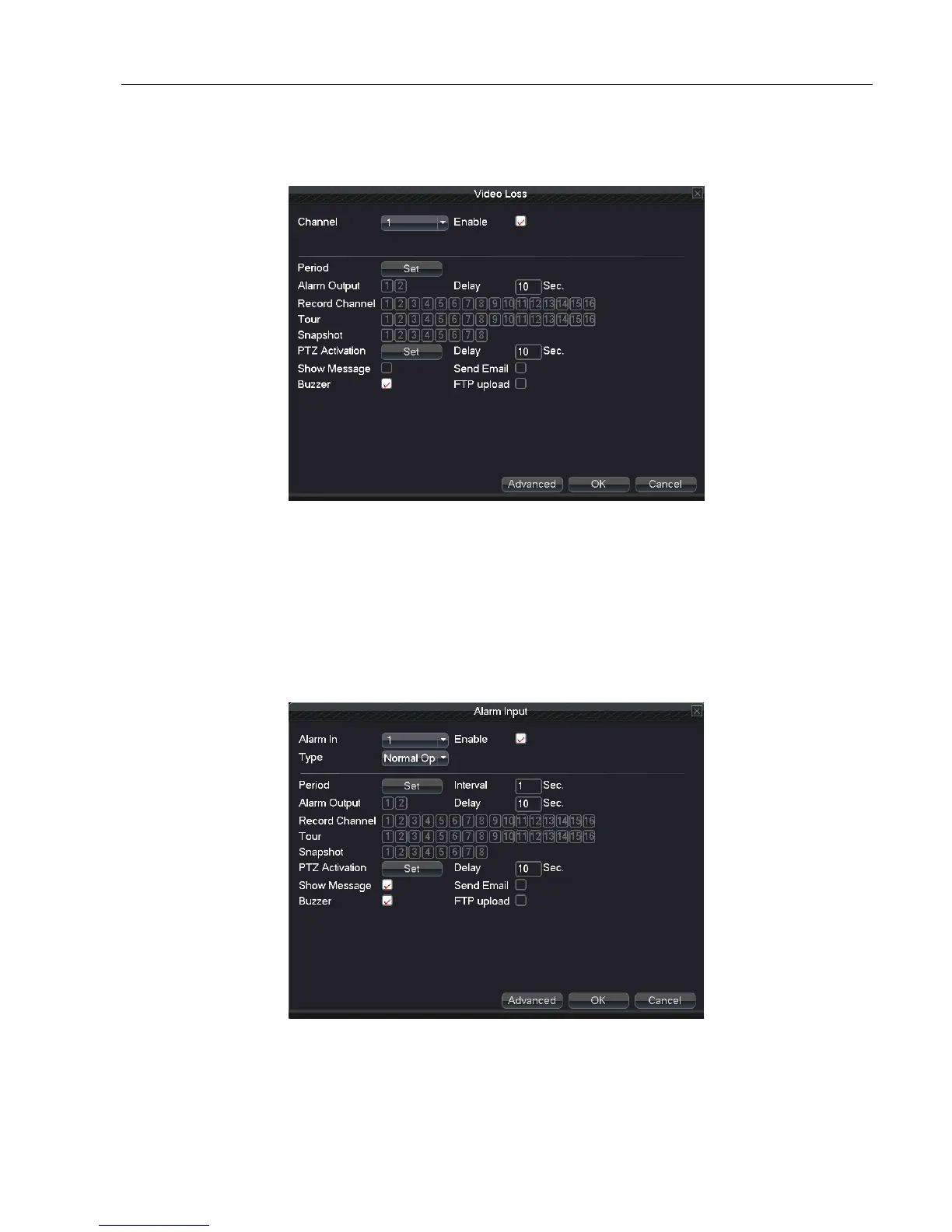 When the equipment can not obtain the video signal, the video loss alarm and the linkage functions is open.