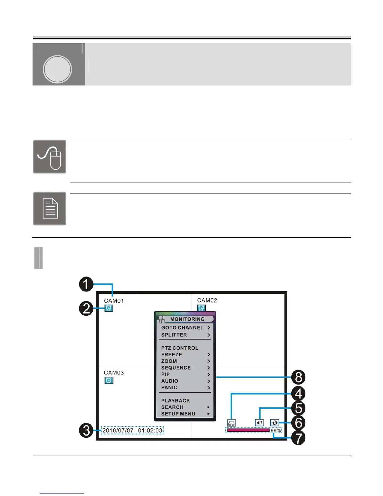 The operation of the DVR is GUI (Graphical User Interface) based. All menus and configuration settings are made
