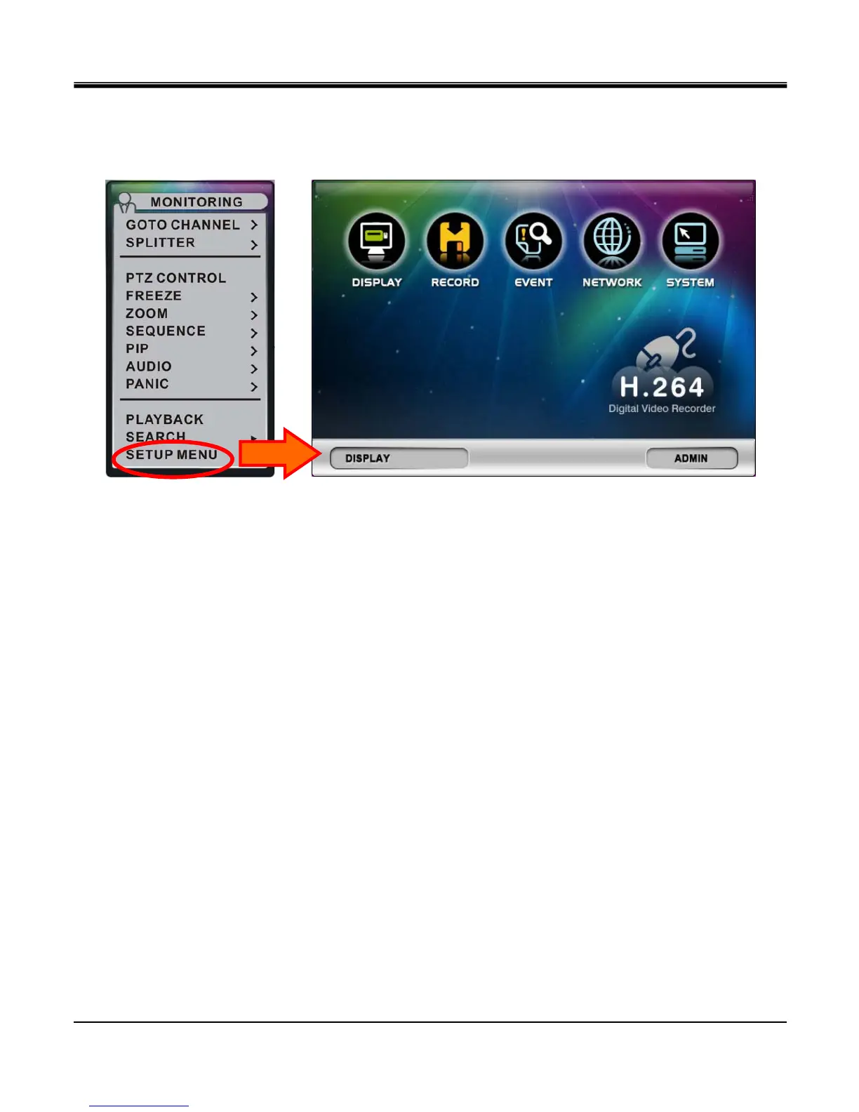 pSetup Group icon: There are 5 setup group icons “DISPLAY”, “RECORD”,