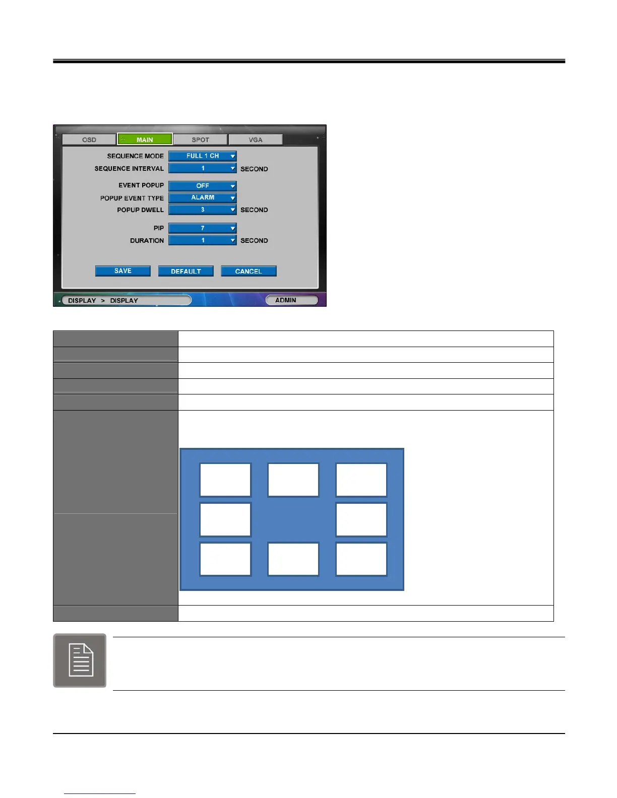 To enable sequencing of camera, the “EVENT POPUP" should be at “OFF" setting.