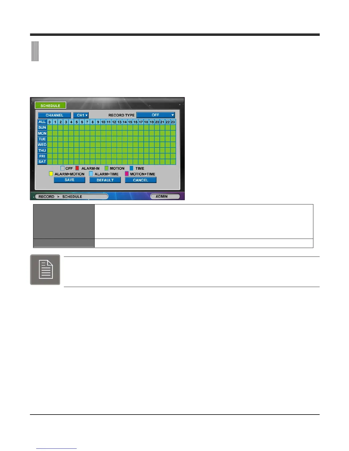 By clicking the “SCHEDULE" list option item in “RECORD" setup group icon the “SCHEDULE" tab window will