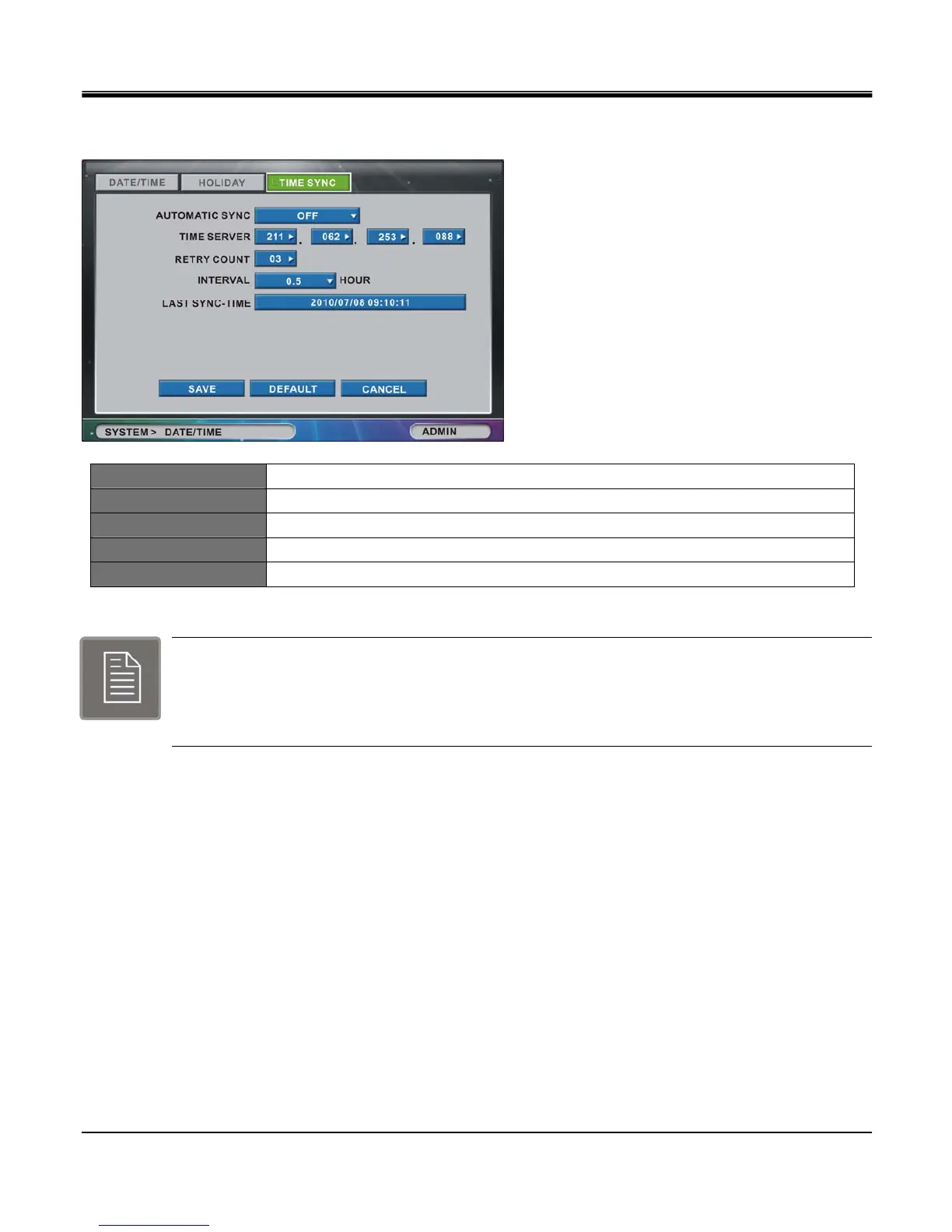 INTERVAL Automatic Sync Interval (0.5, 1, 2, 3, 4, 5, 6, 12, 24 hours)