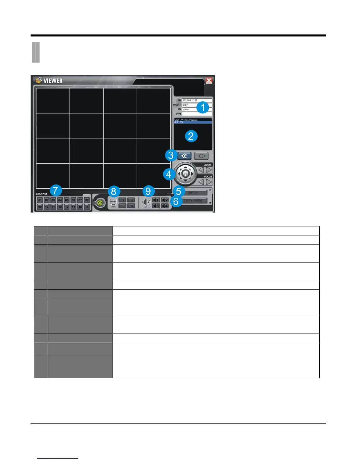 1 DVR connection setup Input IP address, Port number, ID, Password