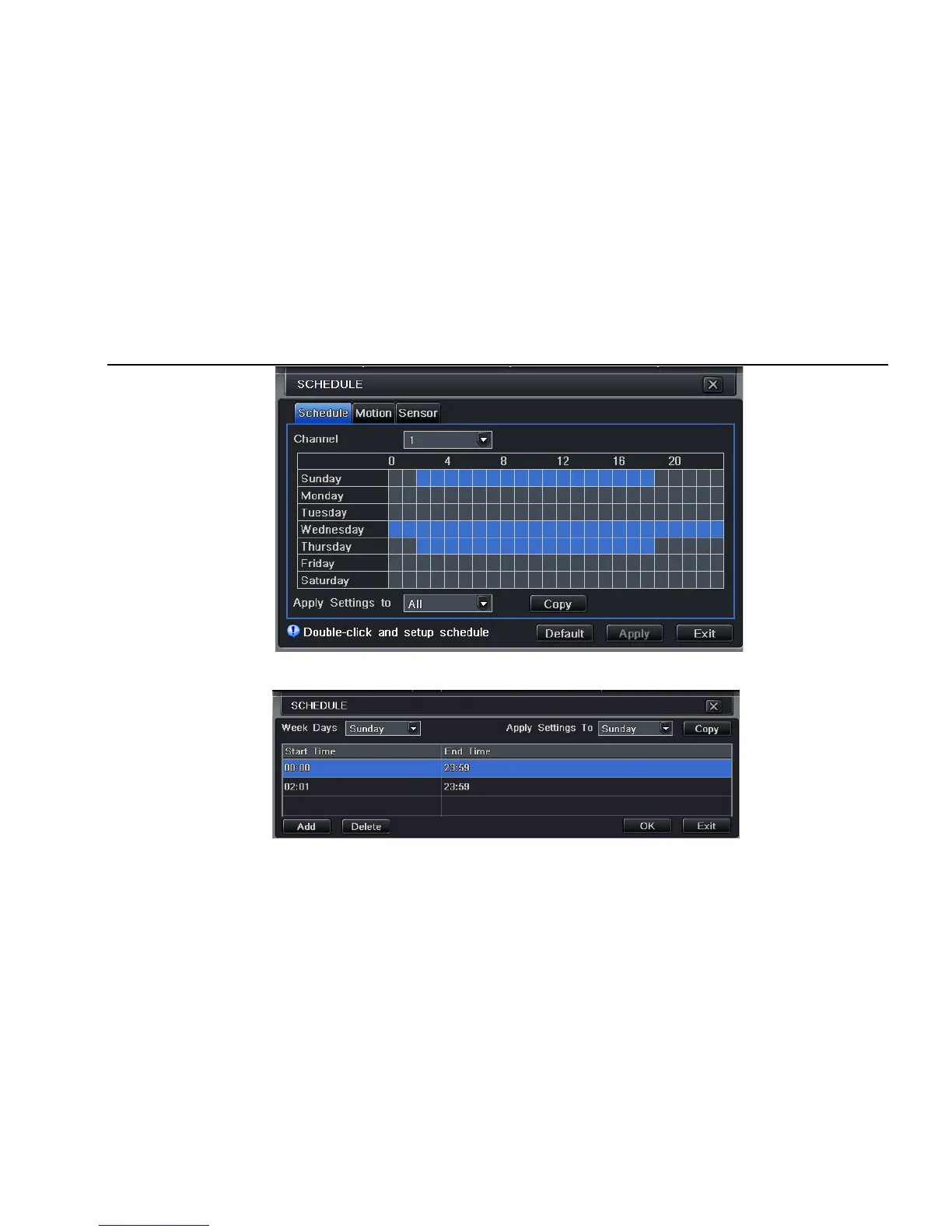 Step2: select channel, double-click and a dialog box will pop-up as Fig 4-16, user can edit week schedule: