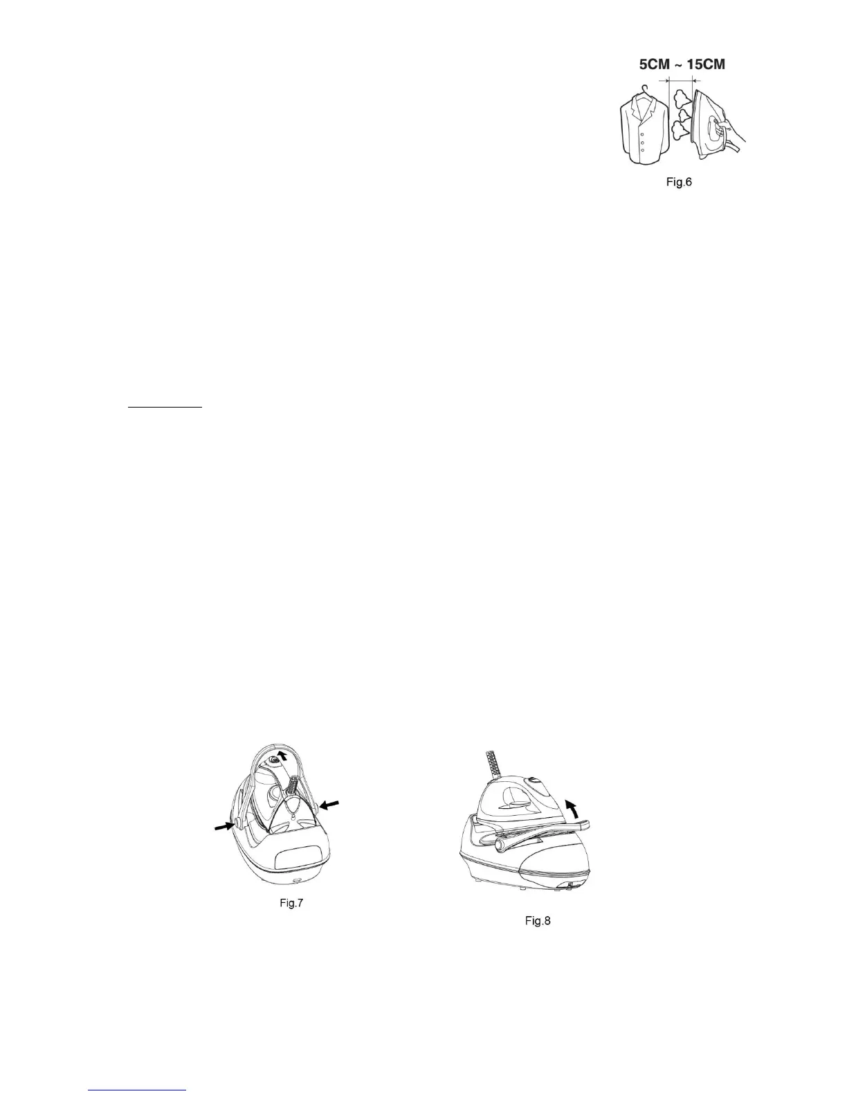 cm van de stof. ( Afb. 6 ) Druk op de Stoomknop. Dit zal verticale stoom te