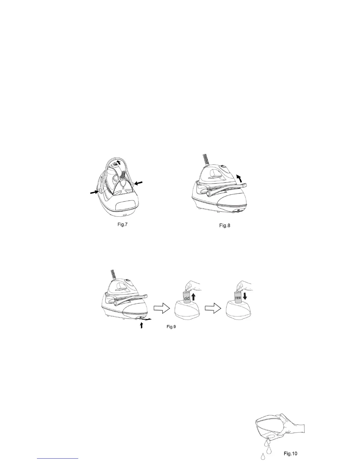 Remove the reservoir before taking off the old filter and replacing it with a new one. (Fig.9).