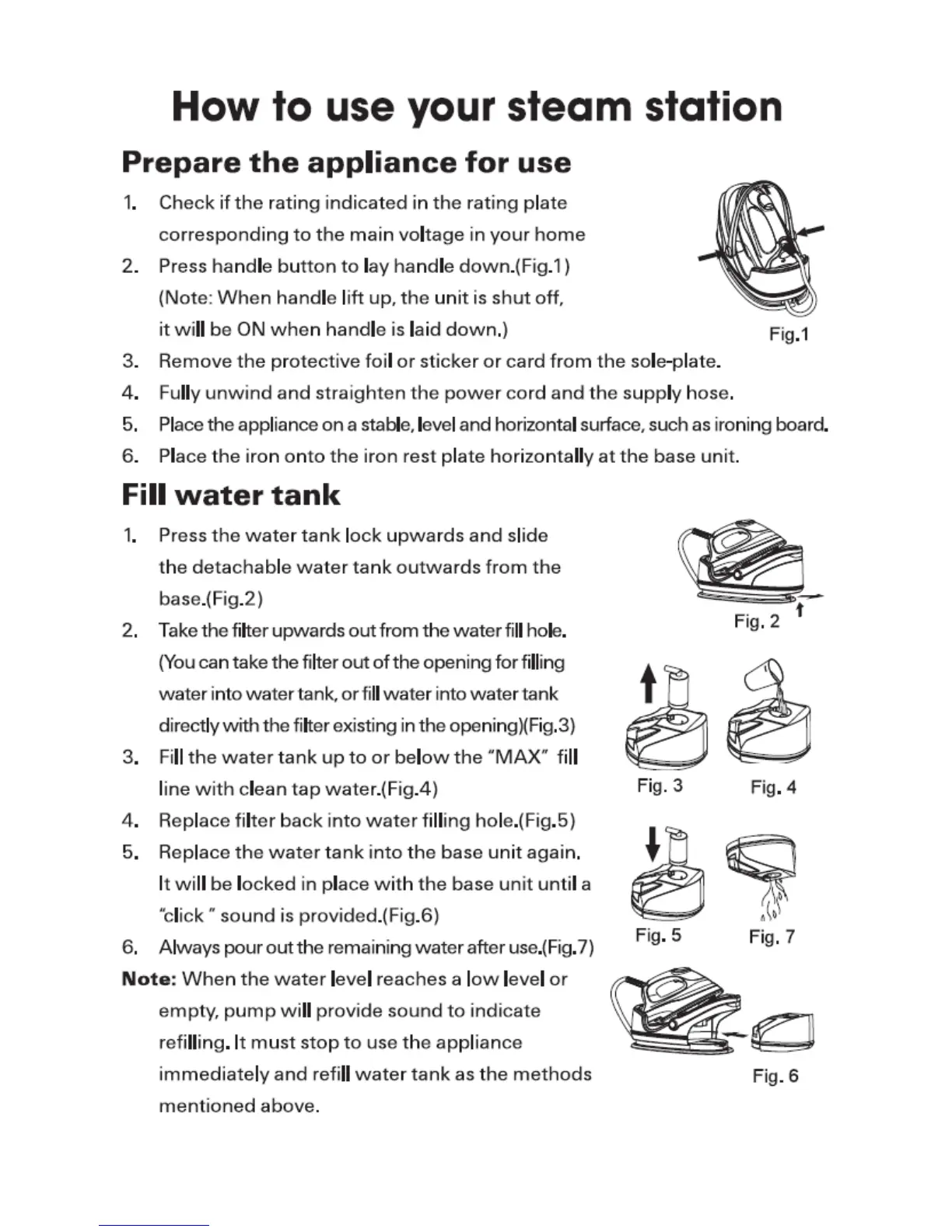H.Koenig V6 - How to Use Your Steam Station; Preparing the Appliance; Filling the Water Tank