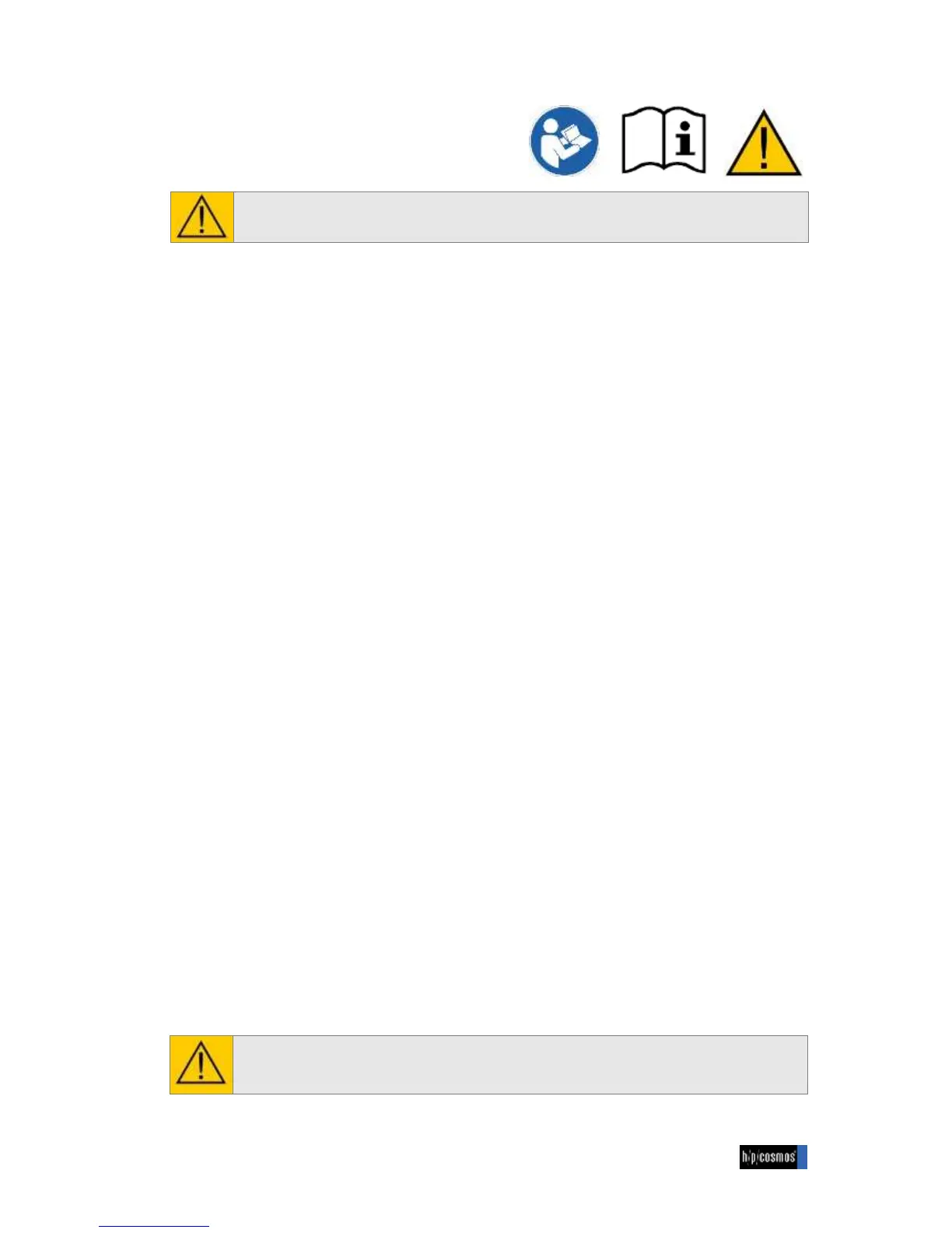 N Exact observance of the operating instructions is required for appropriate operation of the h/p/cosmos device.