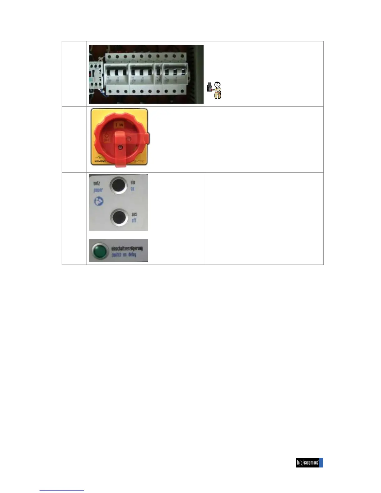 switching cabinet are switched on. Opening of the