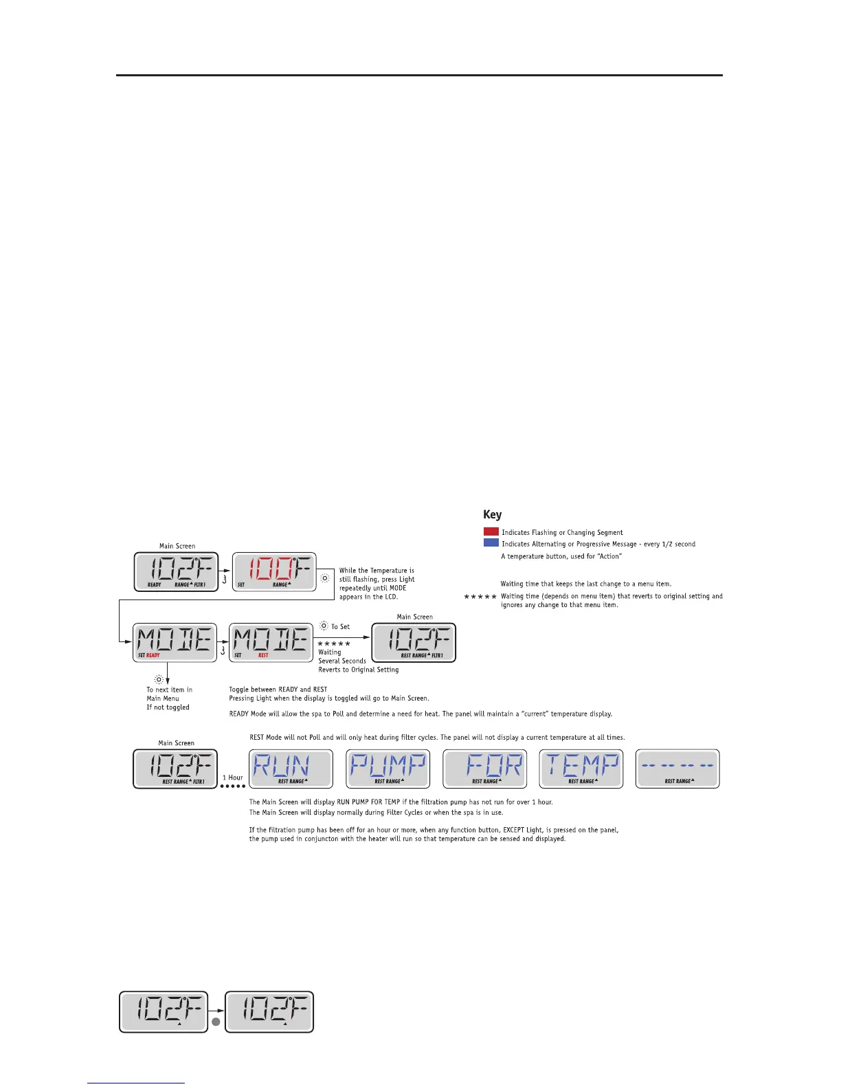 READY/REST appears on the display if the swim spa is in Rest Mode and Jet 1 or Aux pump (if