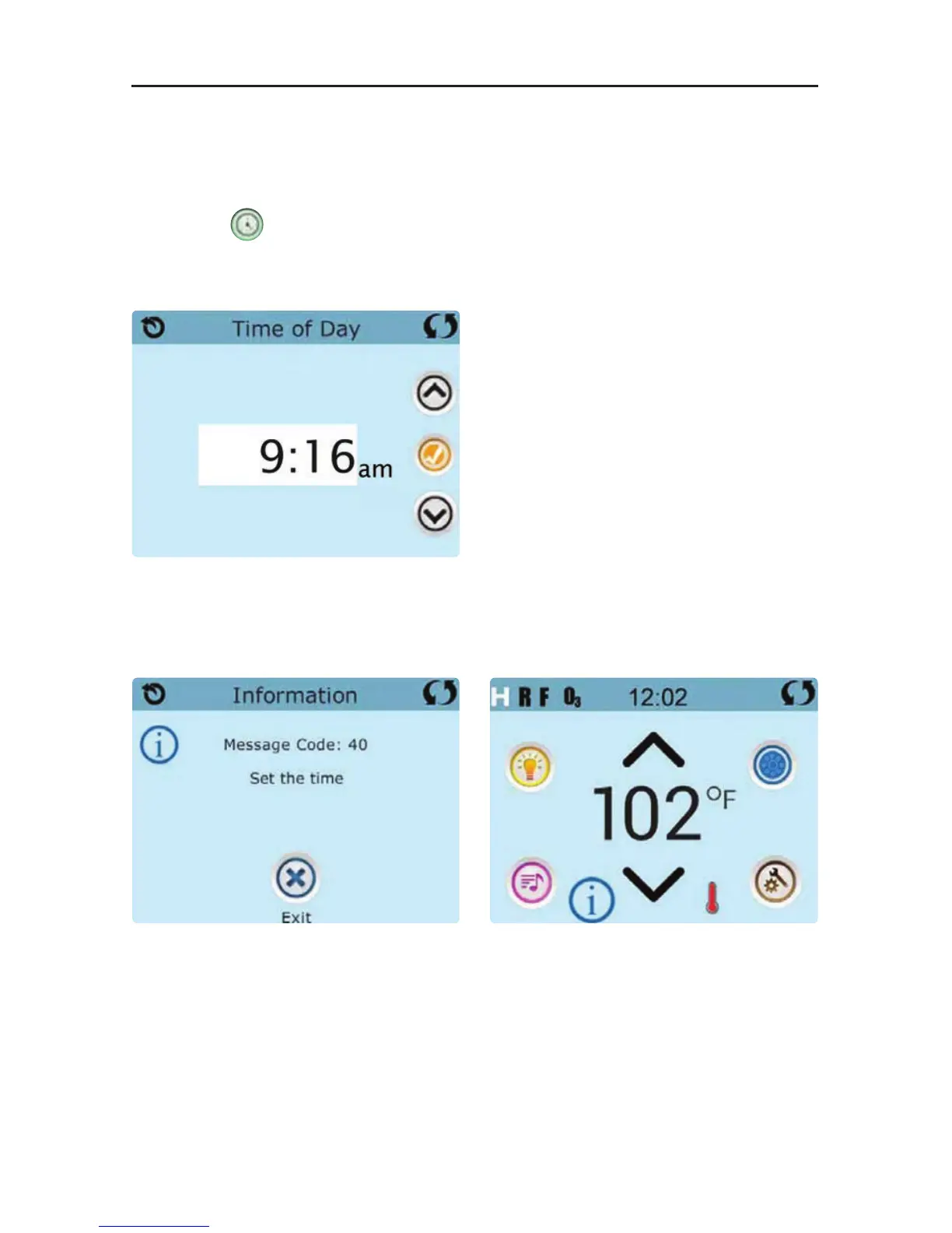 Icon will appear at the bottom of the Main Screen, until the time-of-day has been set.