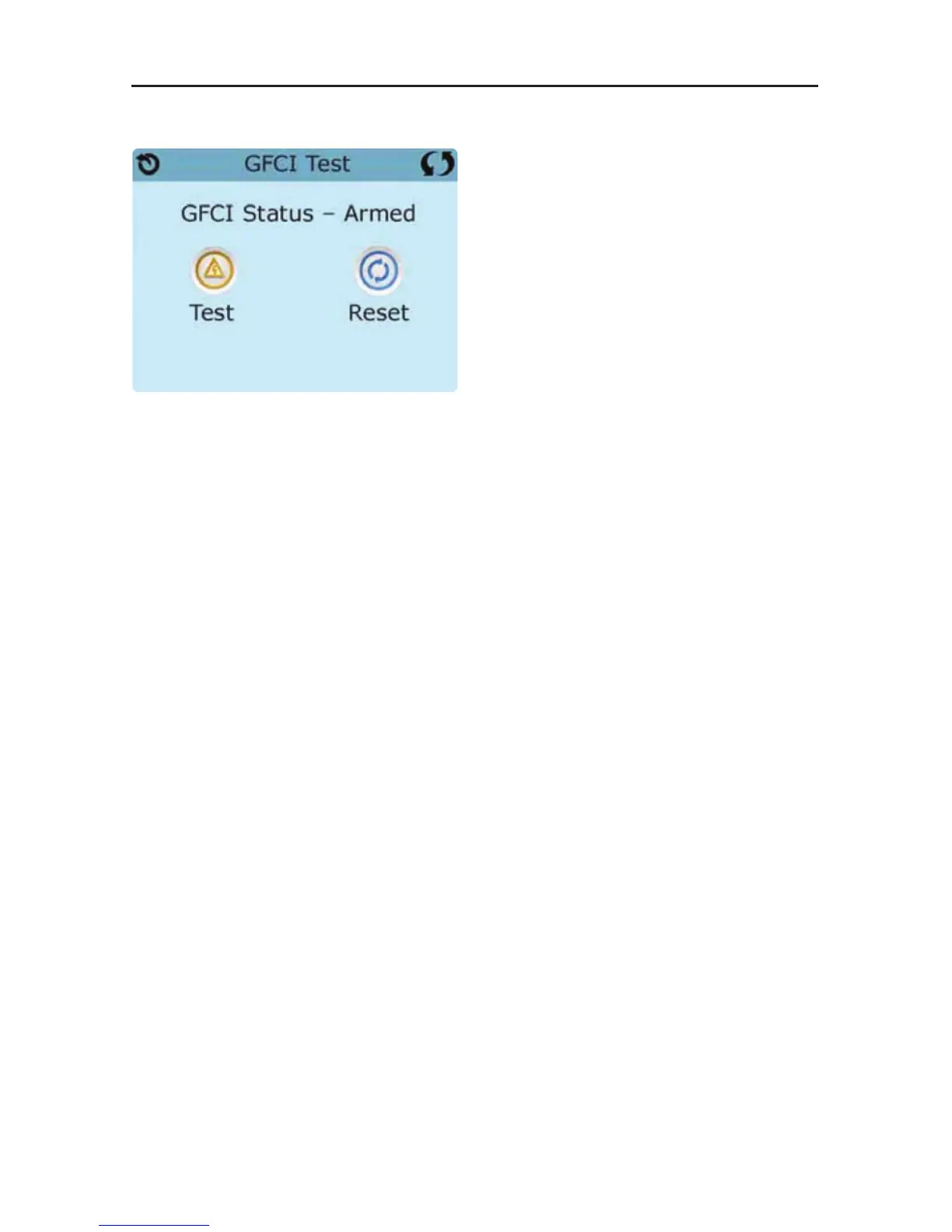Touching the GFCI Test Icon on the Utilities Screen takes you to the GFCI Test screen. This feature