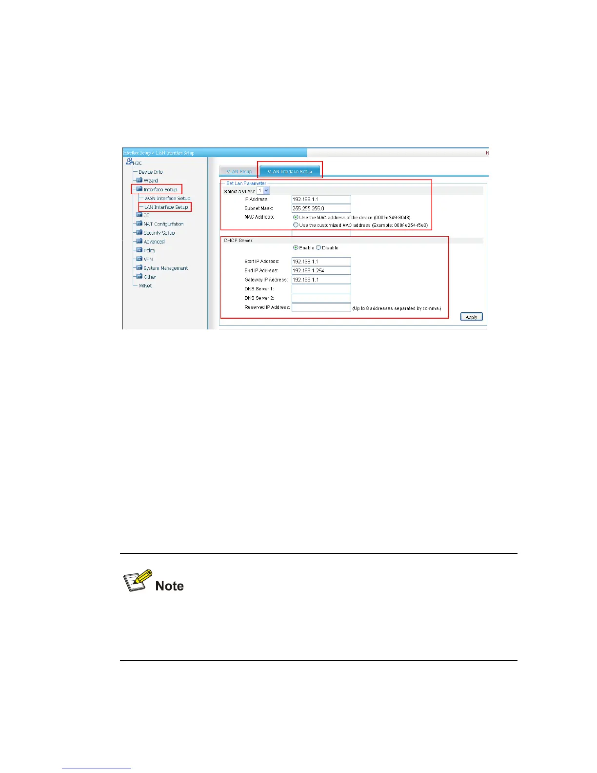 Step1 Select Interface Setup > LAN Interface Setup from the navigation