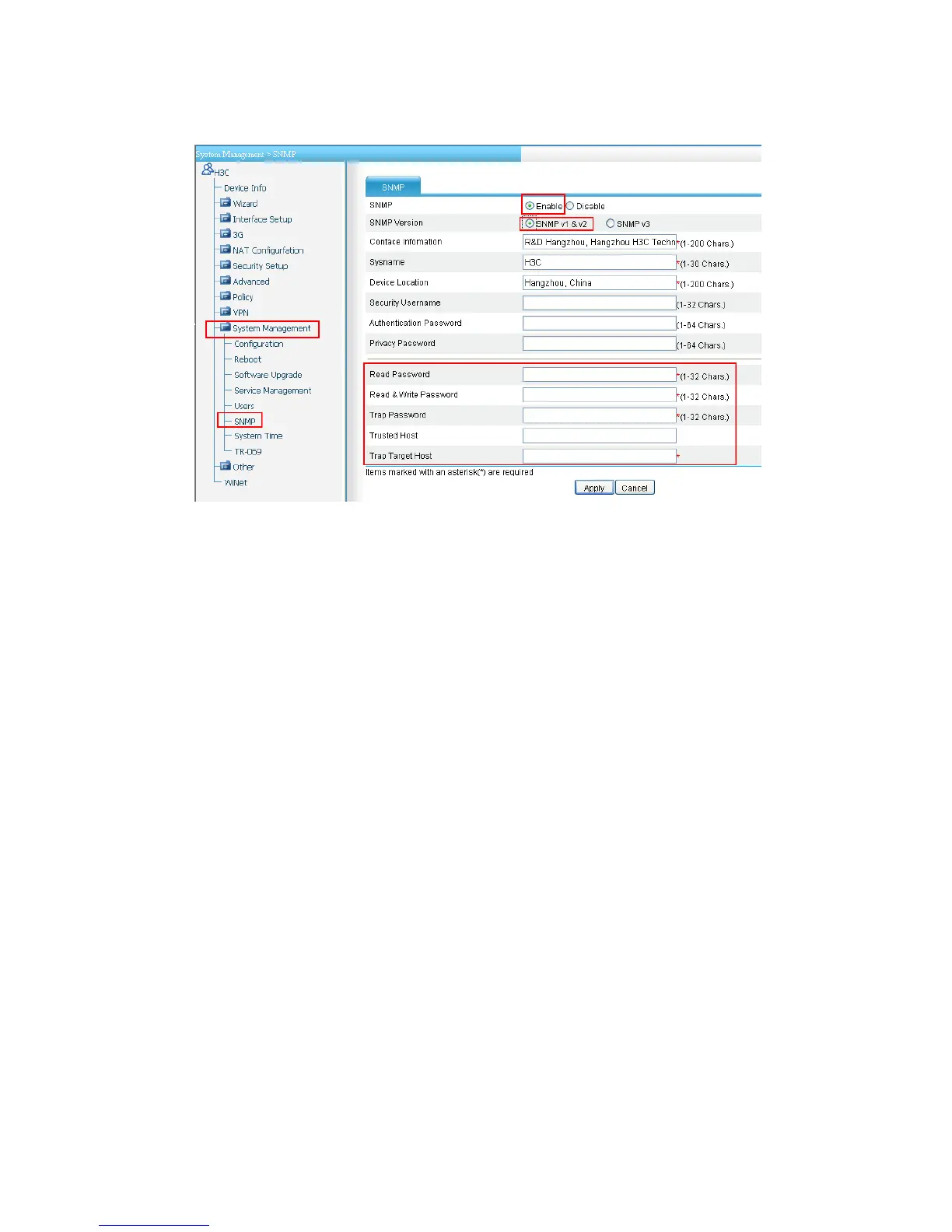 z Select the radio button before Enable to enable SNMP.
