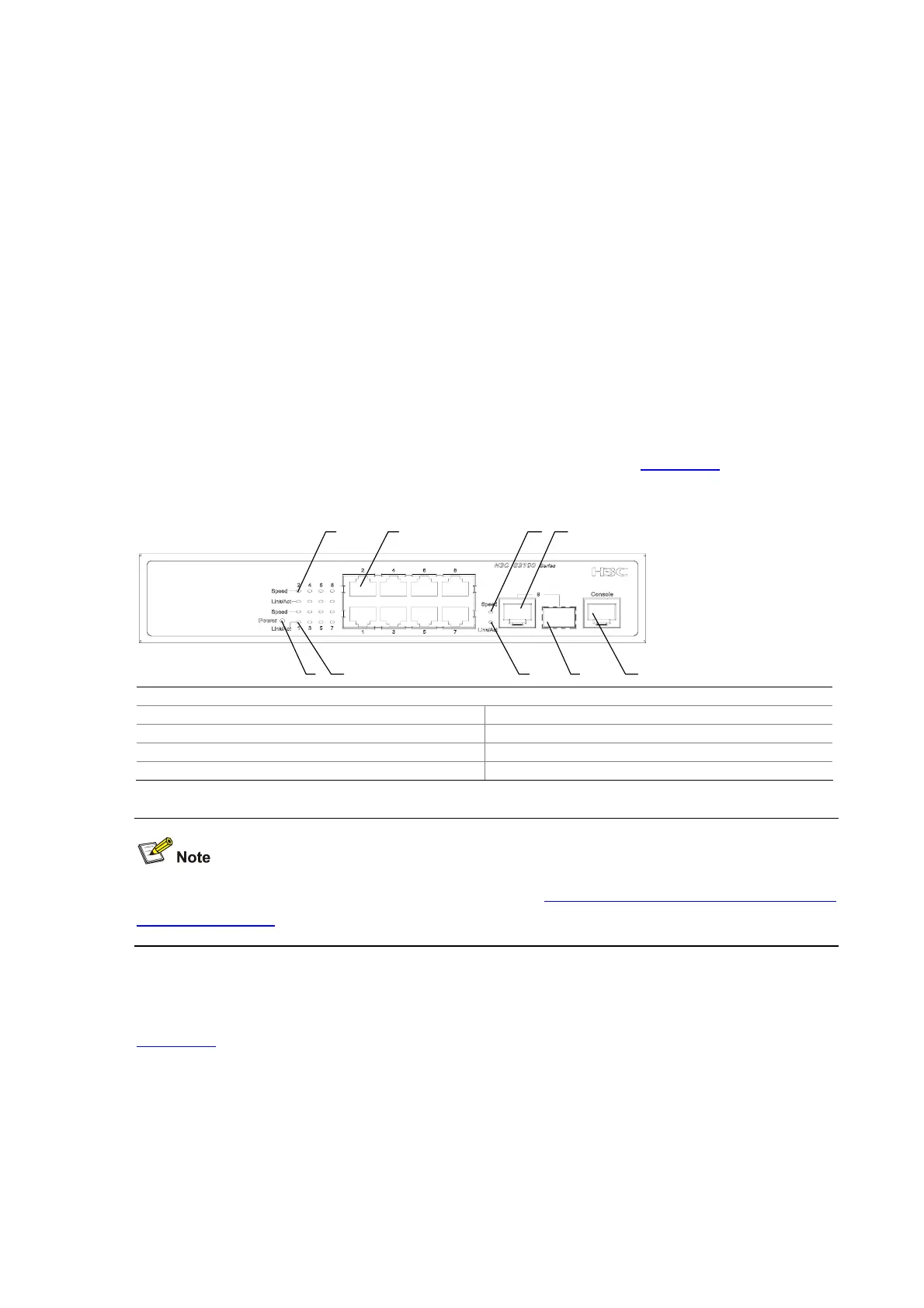 S3100-8TP-EI Ethernet switches have the same front panel, as shown in