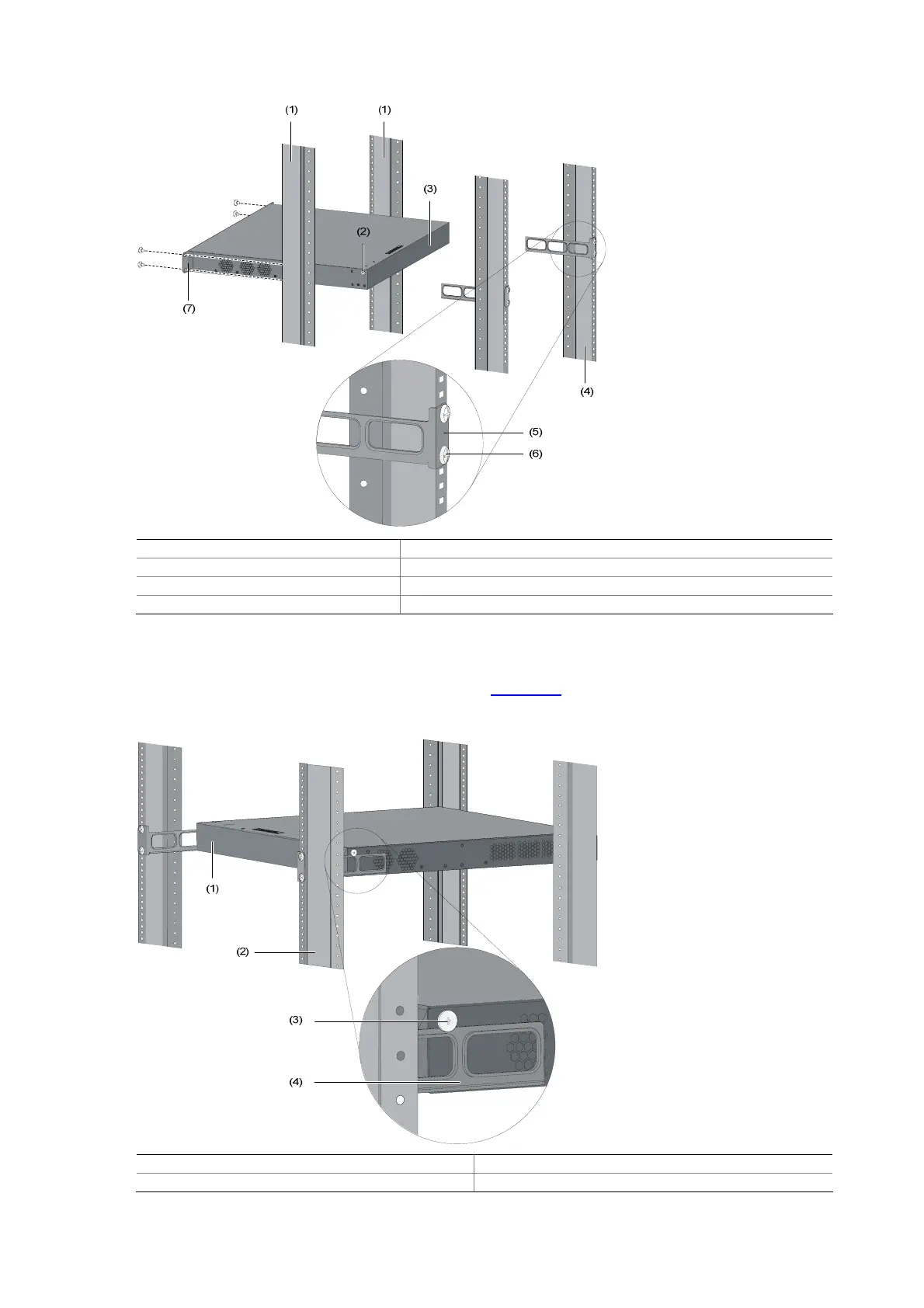 (5) Rear mounting ear (6) Screw used to fix rear mounting ears to rear brackets