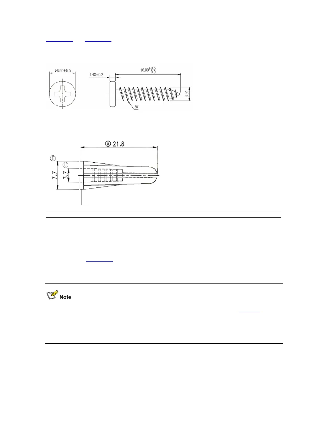 Figure 3-14 and Figure 3-15 show the recommended sizes (in mm) of screws and anchor kits used for