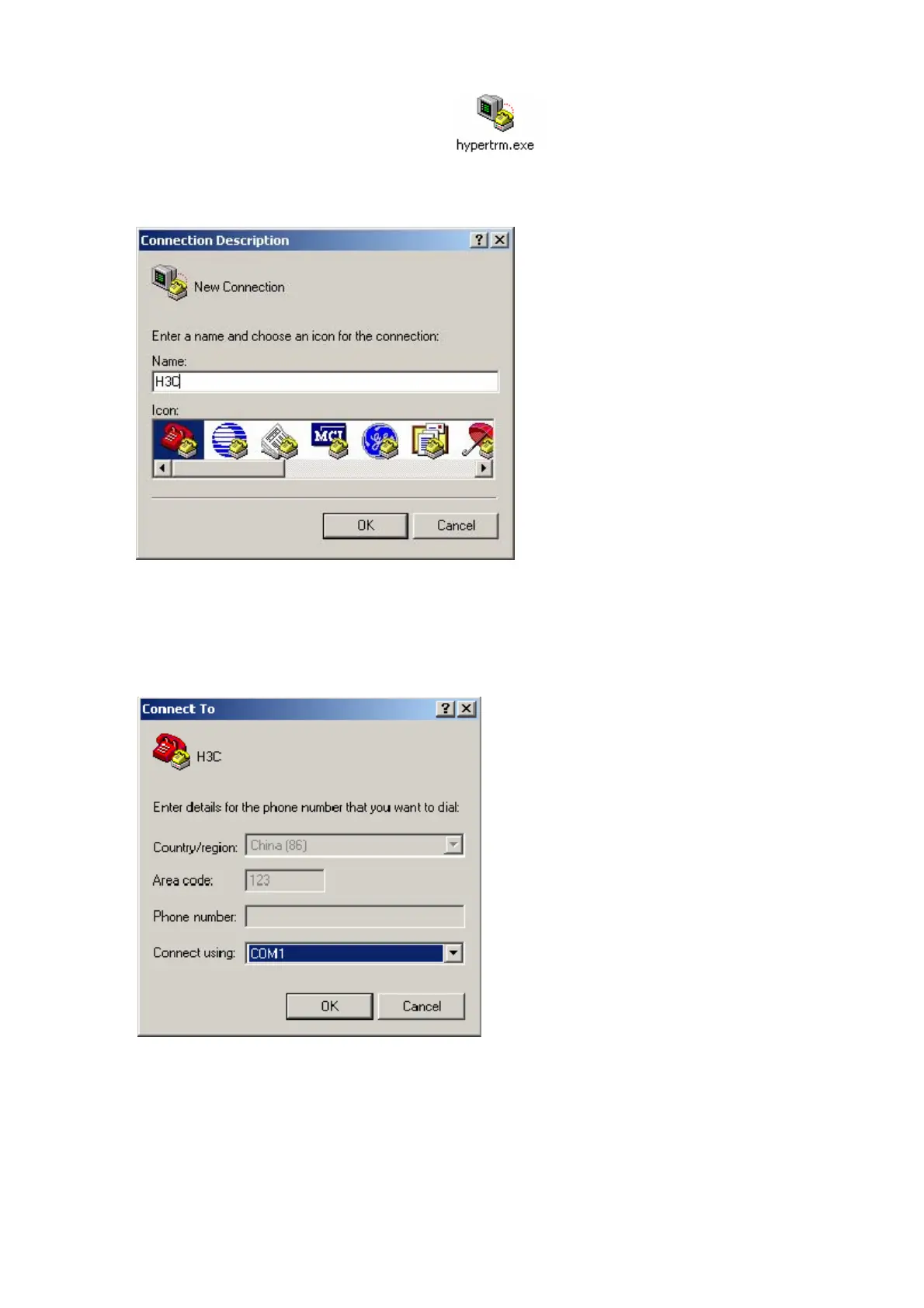 1) Select [Start/Program/Accessories/Communications/HyperTerminal] to enter the