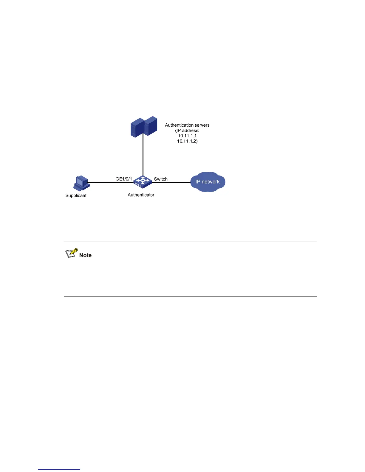 Figure 1-12 Network diagram for AAA configuration with 802.1x and RADIUS enabled