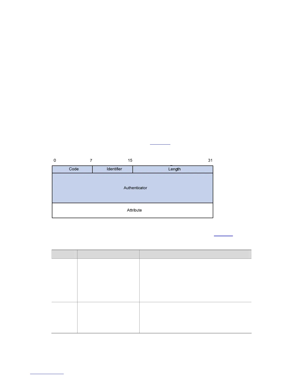 1) The Code field (one byte) decides the type of RADIUS message, as shown in