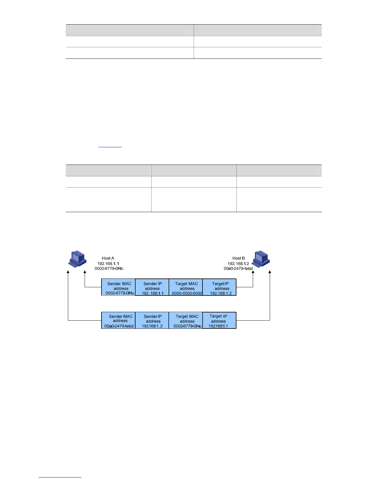 address of Host B and an all-zero MAC address. Because the ARP request is sent in broadcast