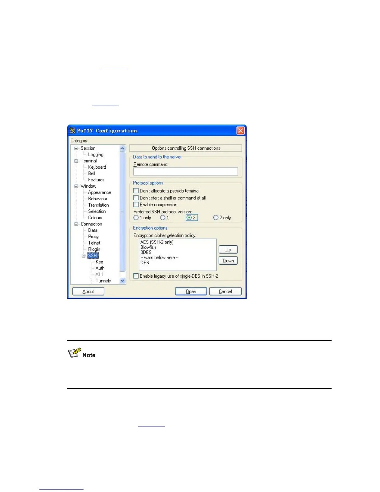 the ssh1 version is selected. The PuTTY client software supports DES algorithm negotiation ssh2.