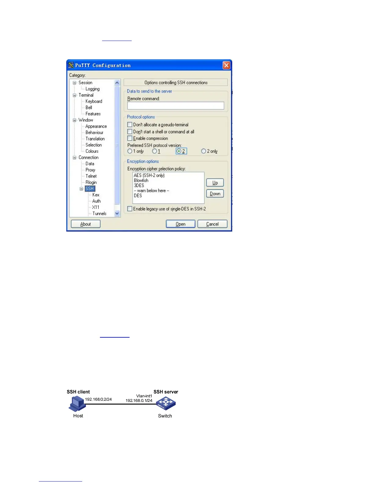 Under Protocol options, select 2 from Preferred SSH protocol version. Then, click Open. If the