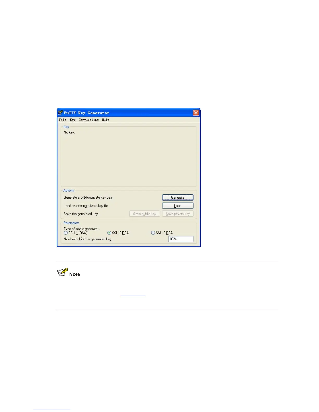 1) Run PuTTYGen.exe, choose SSH2(RSA) and click Generate.