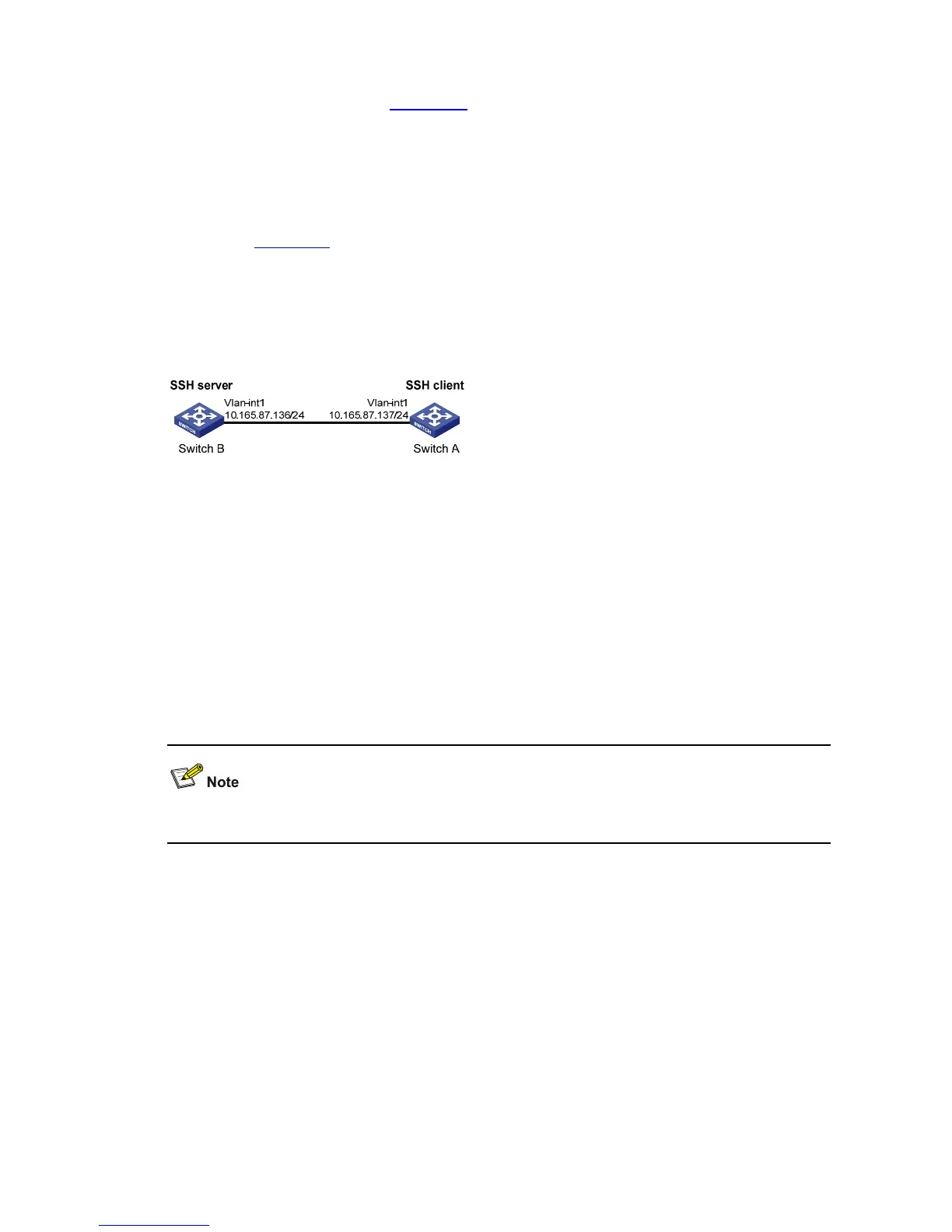 As shown in Figure 1-28, establish an SSH connection between Switch A (SSH Client) and Switch B