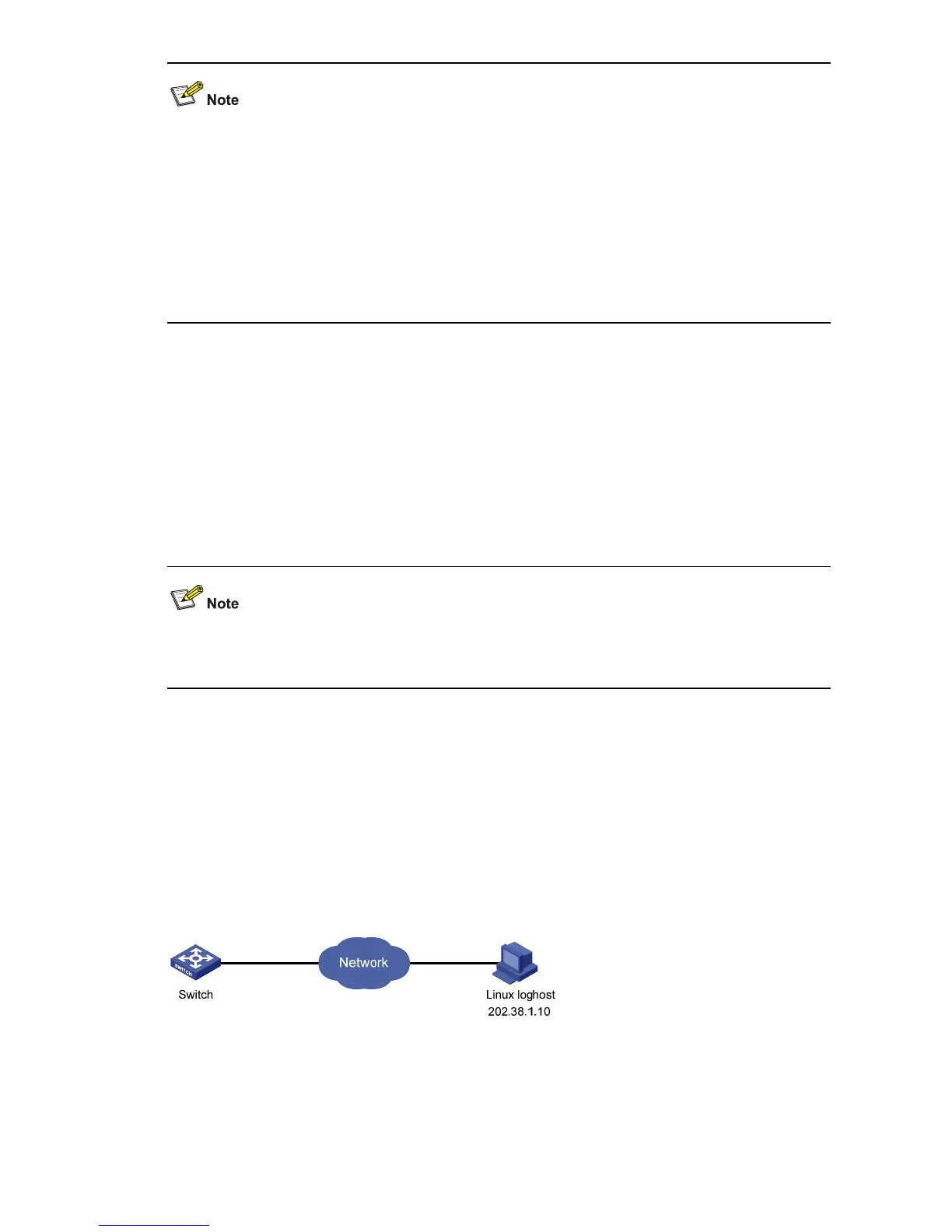 The switch sends the following log information to the Linux log host whose IP address is 202.38.1.10: