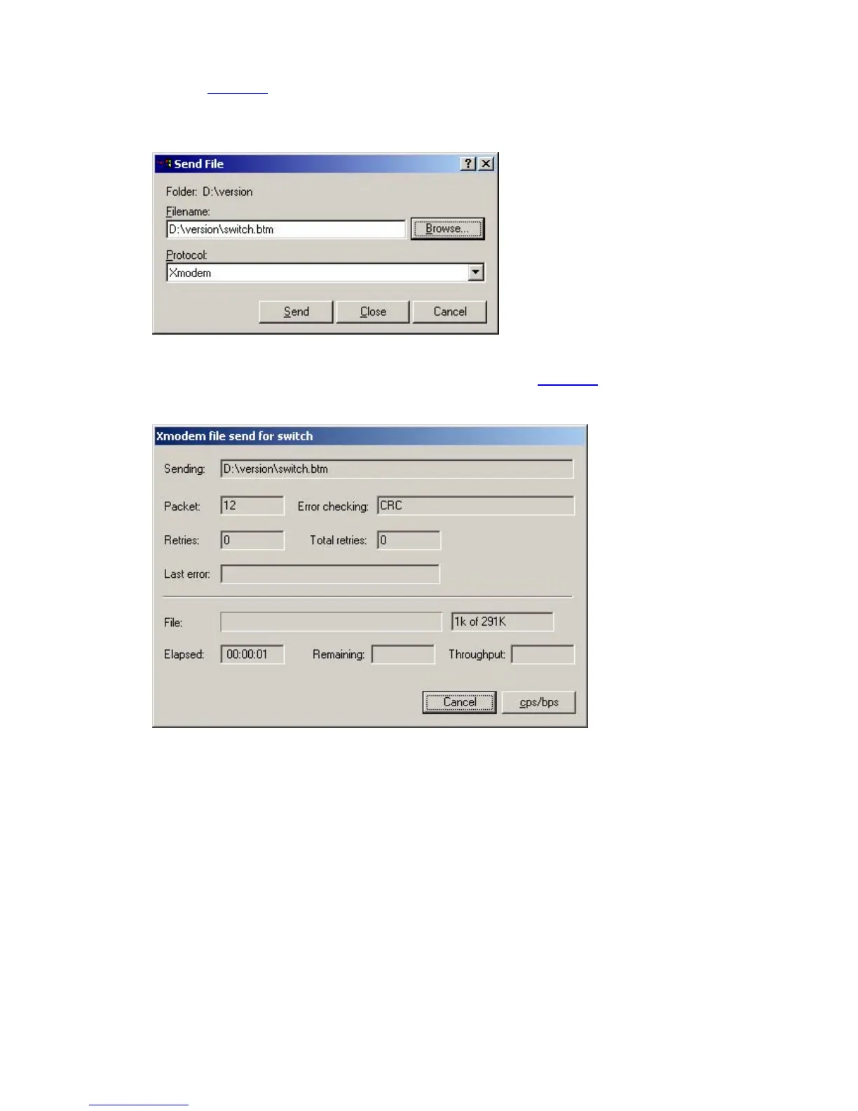 Figure 1-4. Select the software file that you need to load to the switch, and set the protocol to