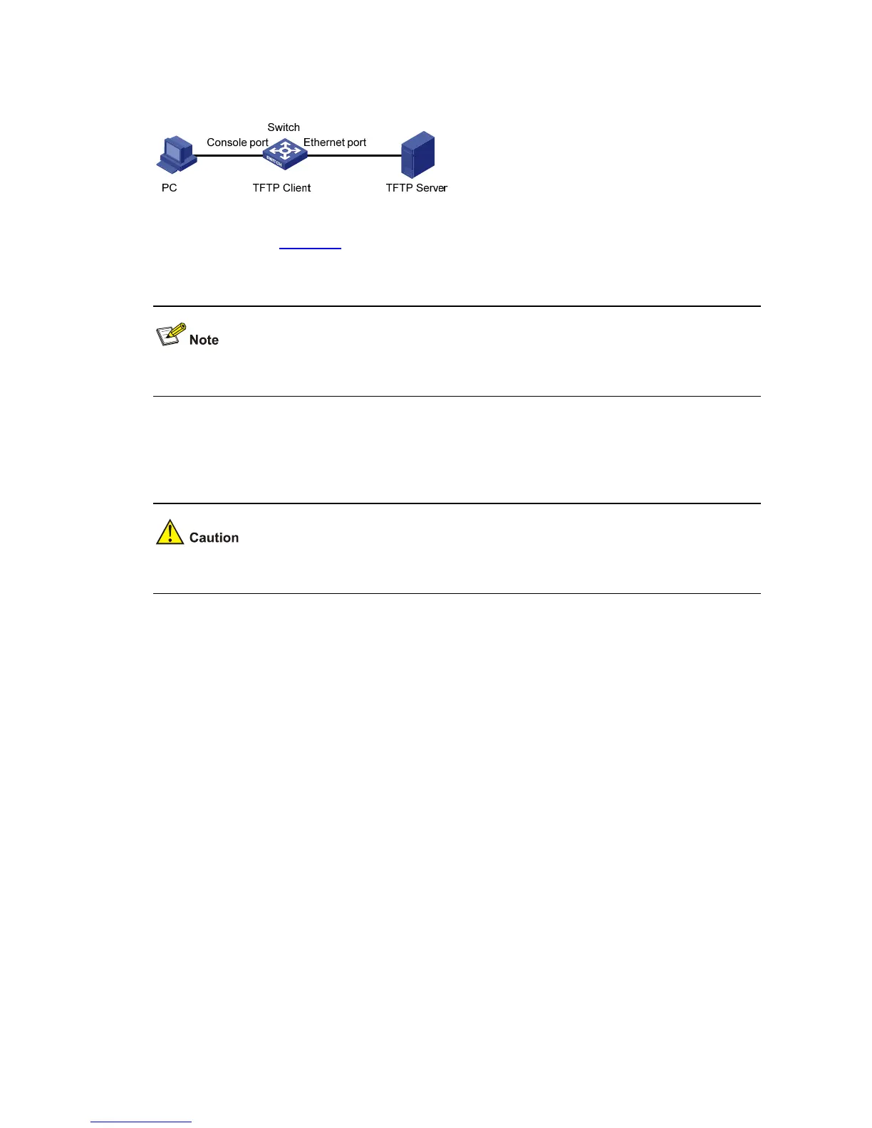 Figure 1-6, connect the switch through an Ethernet port to the TFTP server, and