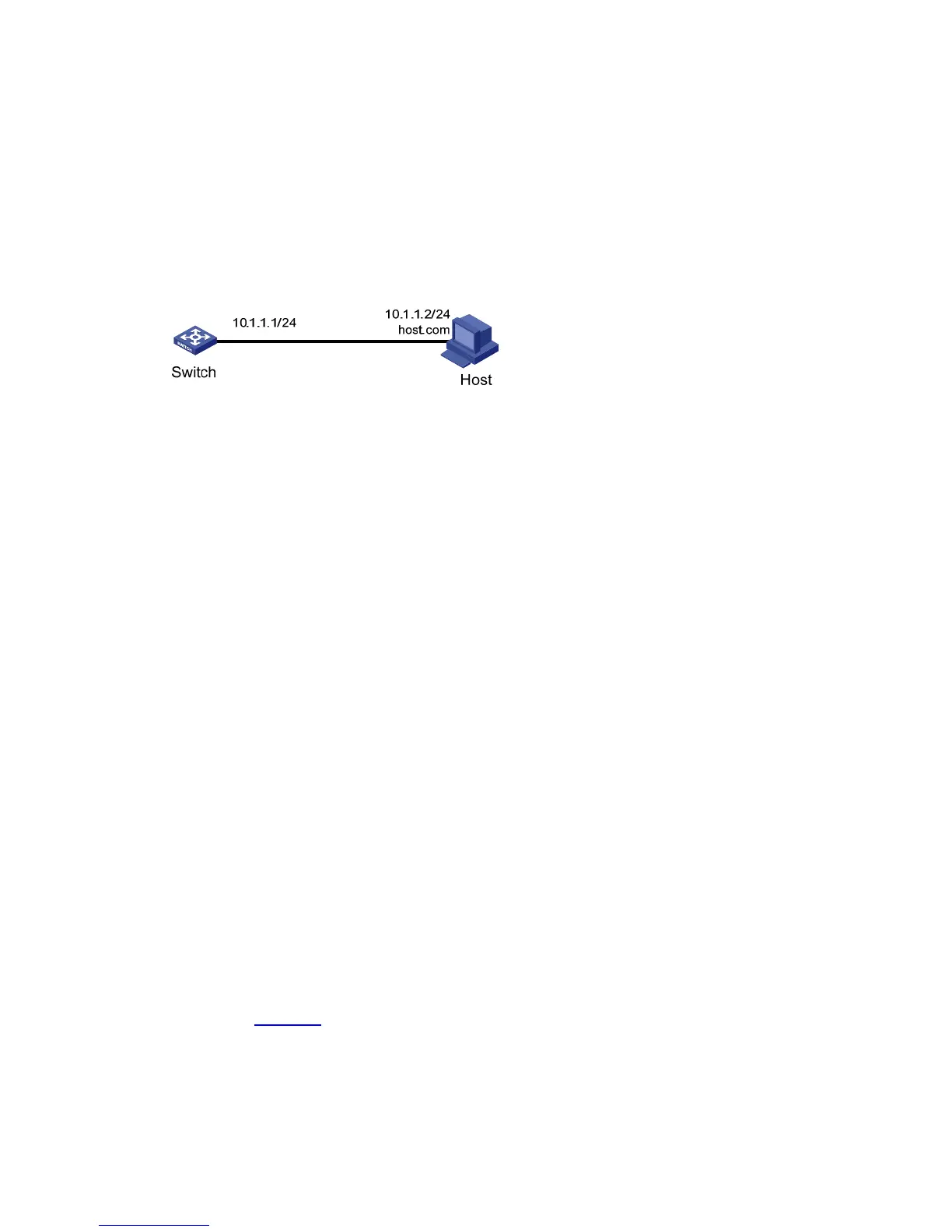 The switch uses static domain name resolution to access host 10.1.1.2 through domain name