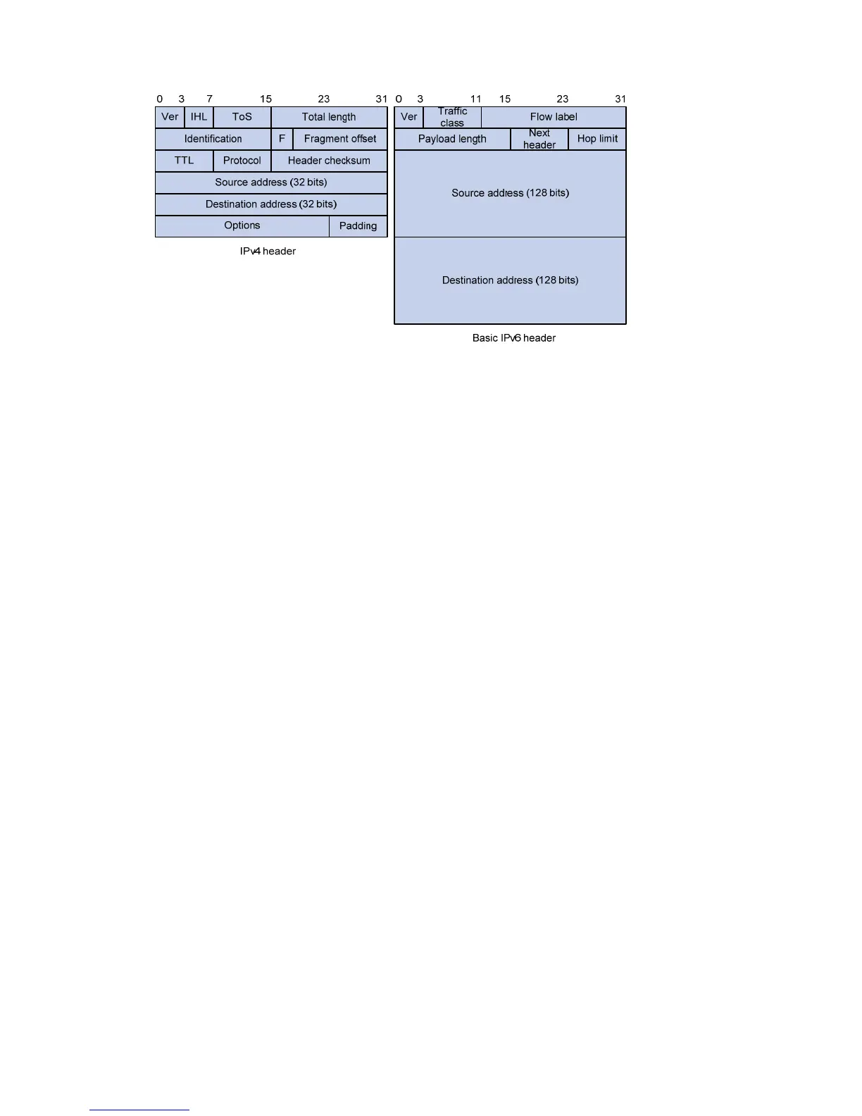 Figure 1-1 Comparison between IPv4 header format and IPv6 header format