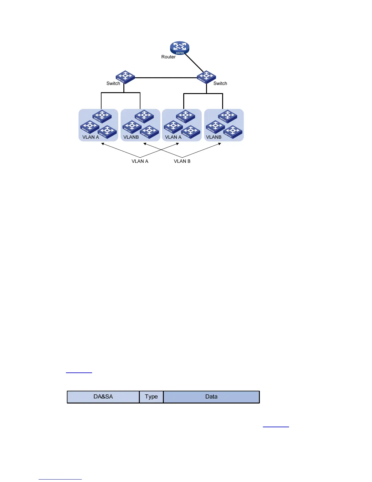 IEEE 802.1Q inserts a four-byte VLAN tag after the DA&SA field, as shown in