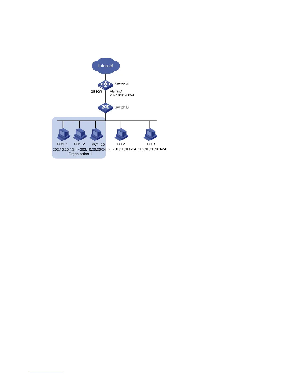 addresses of the PCs of Organization 1 are in the range 202.10.20.1/24 to 202.10.20.20/24, and those