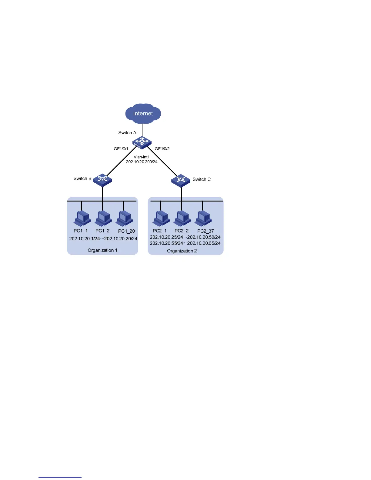 z Allow the PCs of Organization 2 to access the external network through GigabitEthernet 1/0/2 of