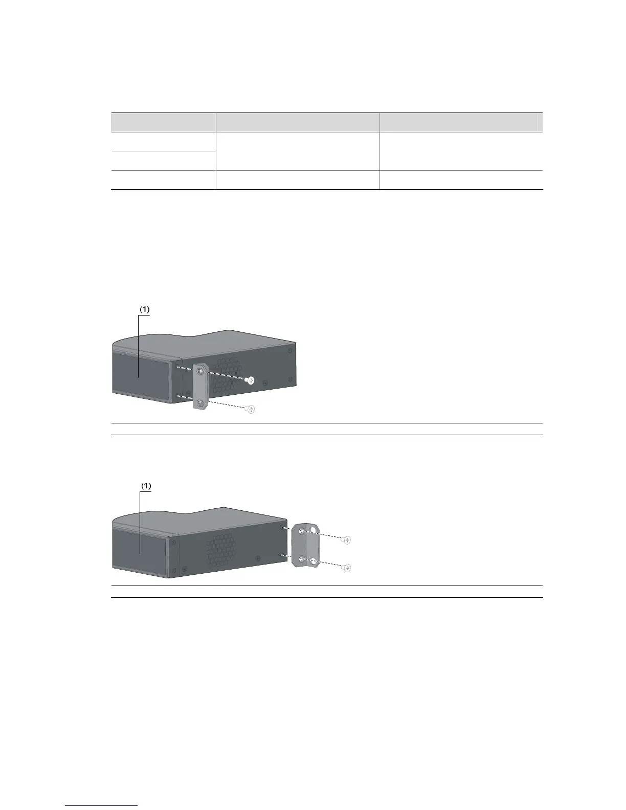 Step1 Place the L2 side of a mounting bracket to the switch and align the mounting holes of the bracket with