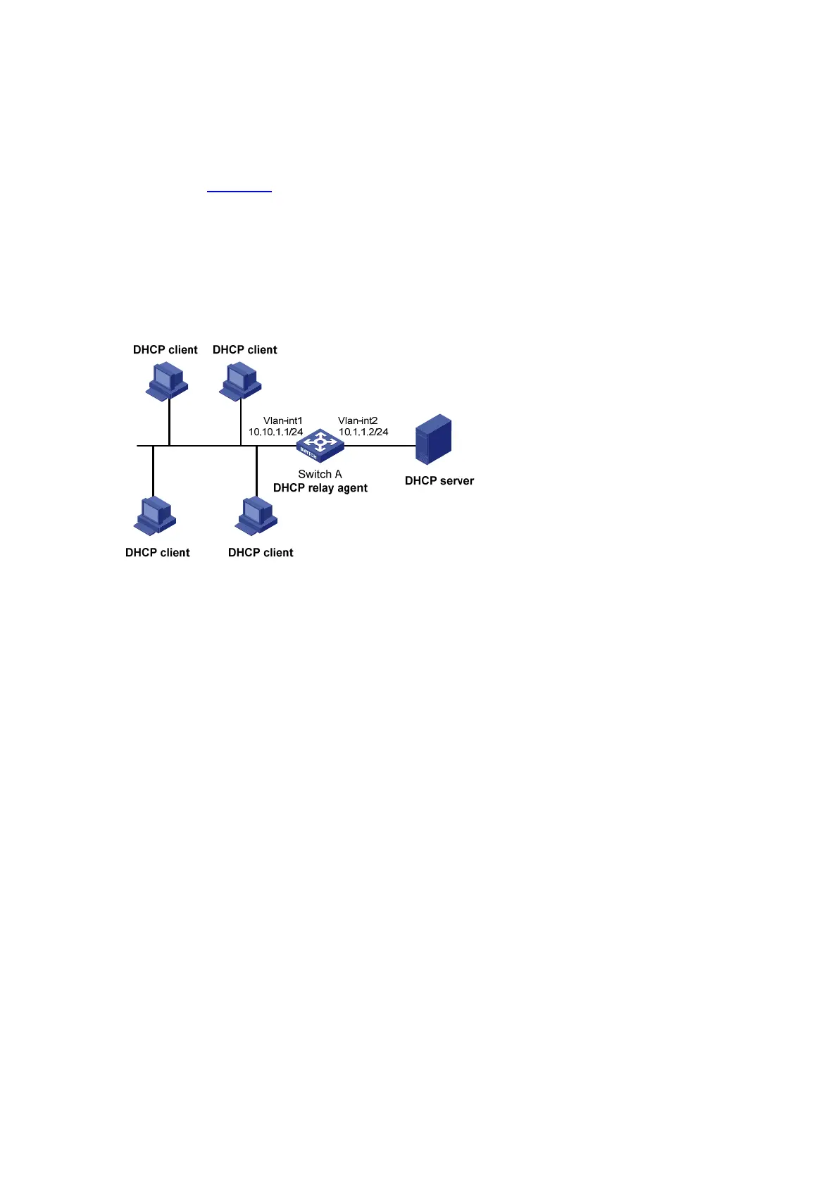 VLAN-interface 1 on the DHCP relay agent (Switch A) connects to the network where DHCP clients