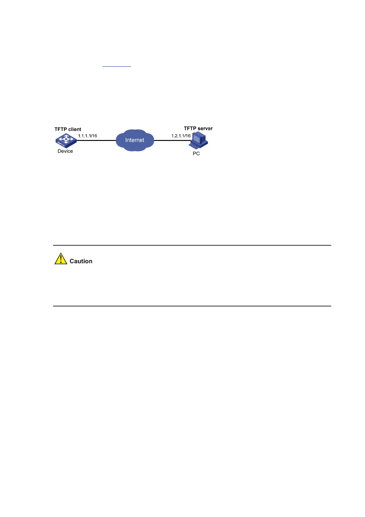 z As shown in Figure 2-2, use a PC as the TFTP server and Device as the TFTP client. Their IP